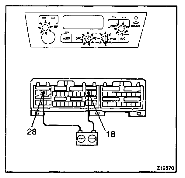 Connect the positive (+) lead from the battery to terminal 28 and the negative (-) lead to terminal 18, then check that the illumination lights up.