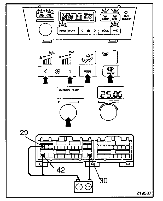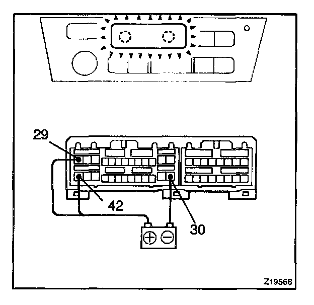 a. Connect the positive (+) lead from the battery to terminal 29, 42 and the negative (-) lead to terminal 30.