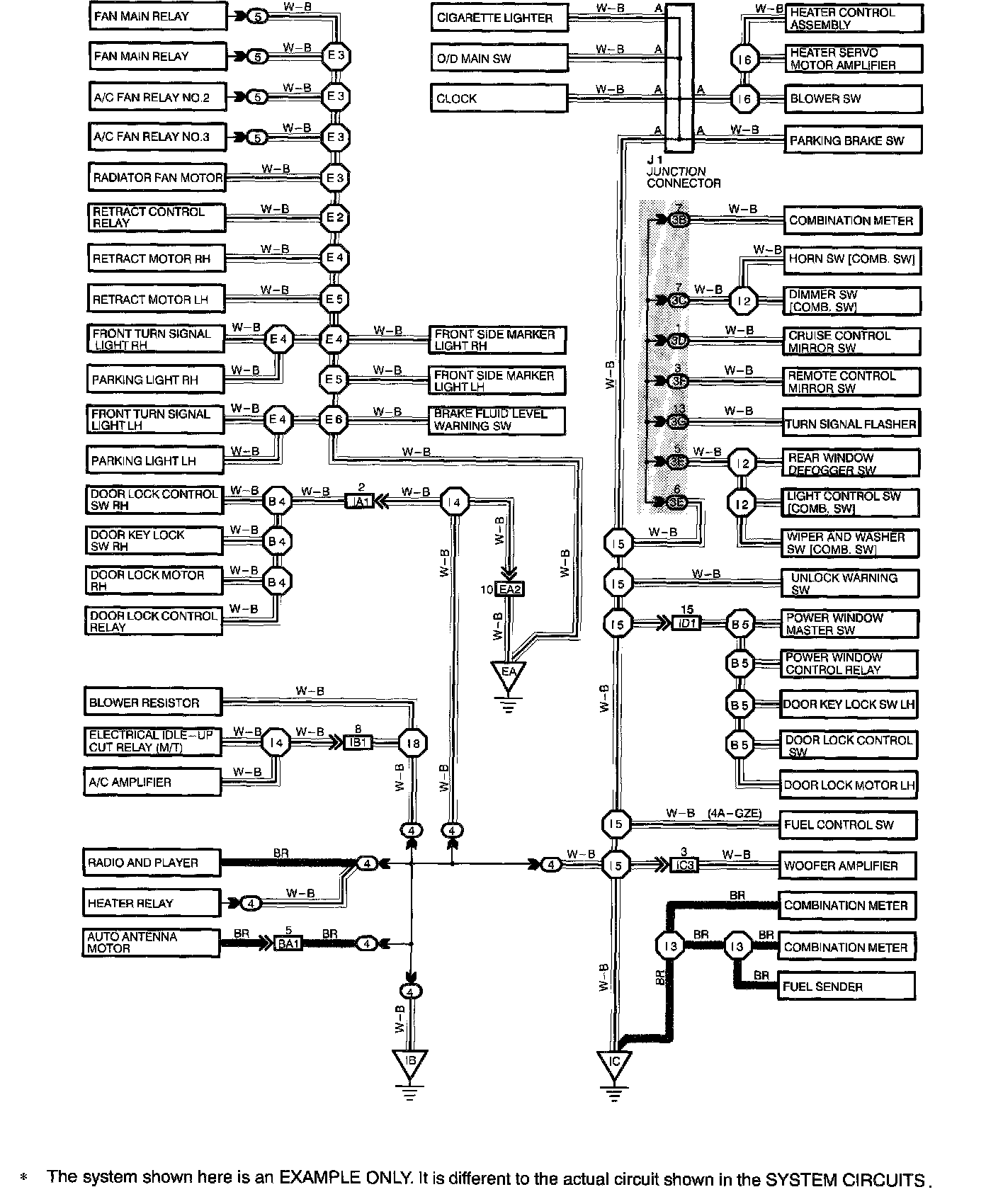 HOW TO READ GROUND POINTSThe ground points circuit diagram shows the connections from all major parts to the respective ground points. When troubleshooting a faulty ground point, checking the system circuits which use a common ground may help you identity the problem ground quickly. The relationship between ground points ((EA) , (IB) and (IC) shown below) can also be checked this way.