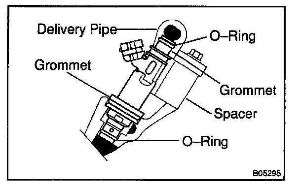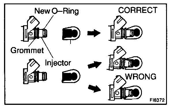 Before installing the injector, must apply spindle oil or gasoline on the place where a delivery pipe or an intake manifold touches an O-ring of the injector.