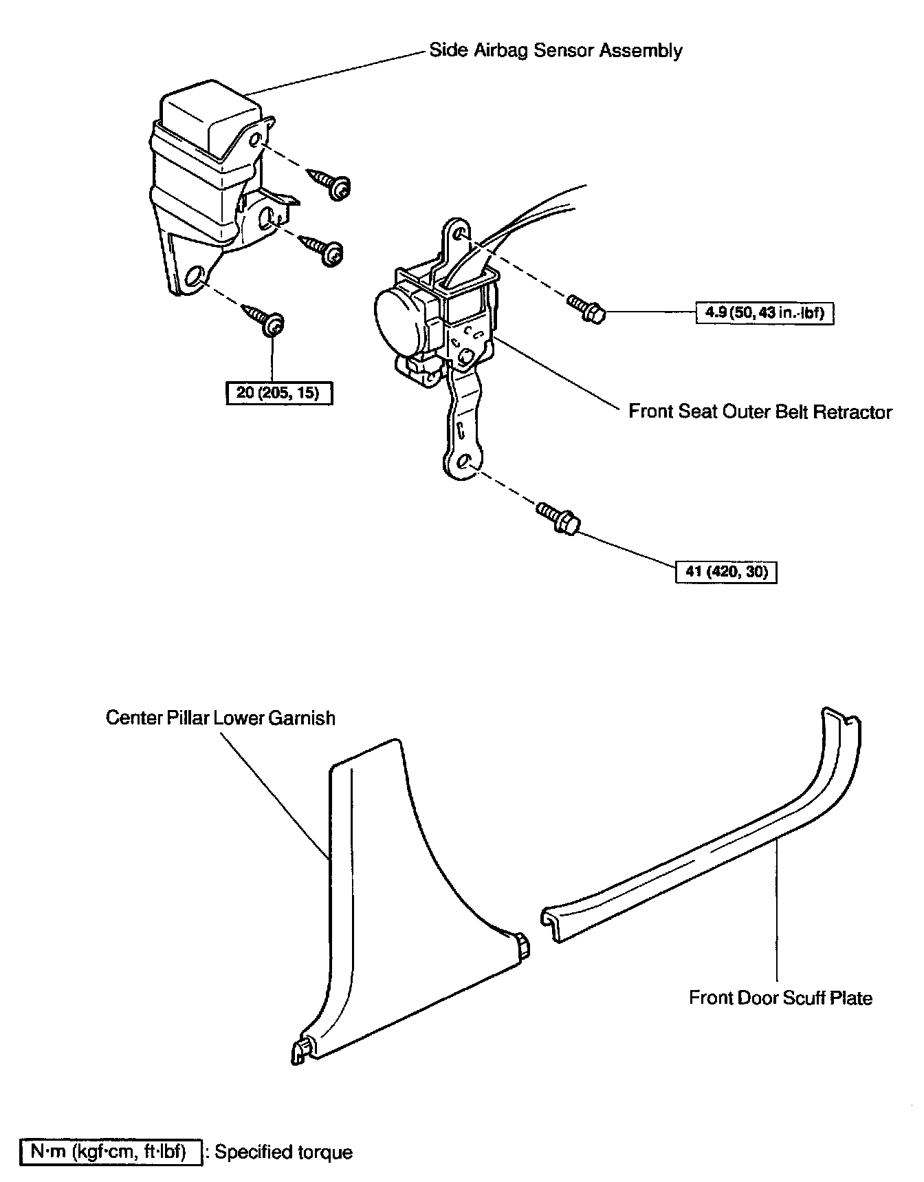Lower bolt: 42 N.m (430 kgf.cm, 31 ft.lbf)