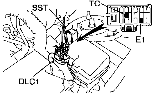 a. Using SST, connect terminals TC and E1 of the DLC1.
