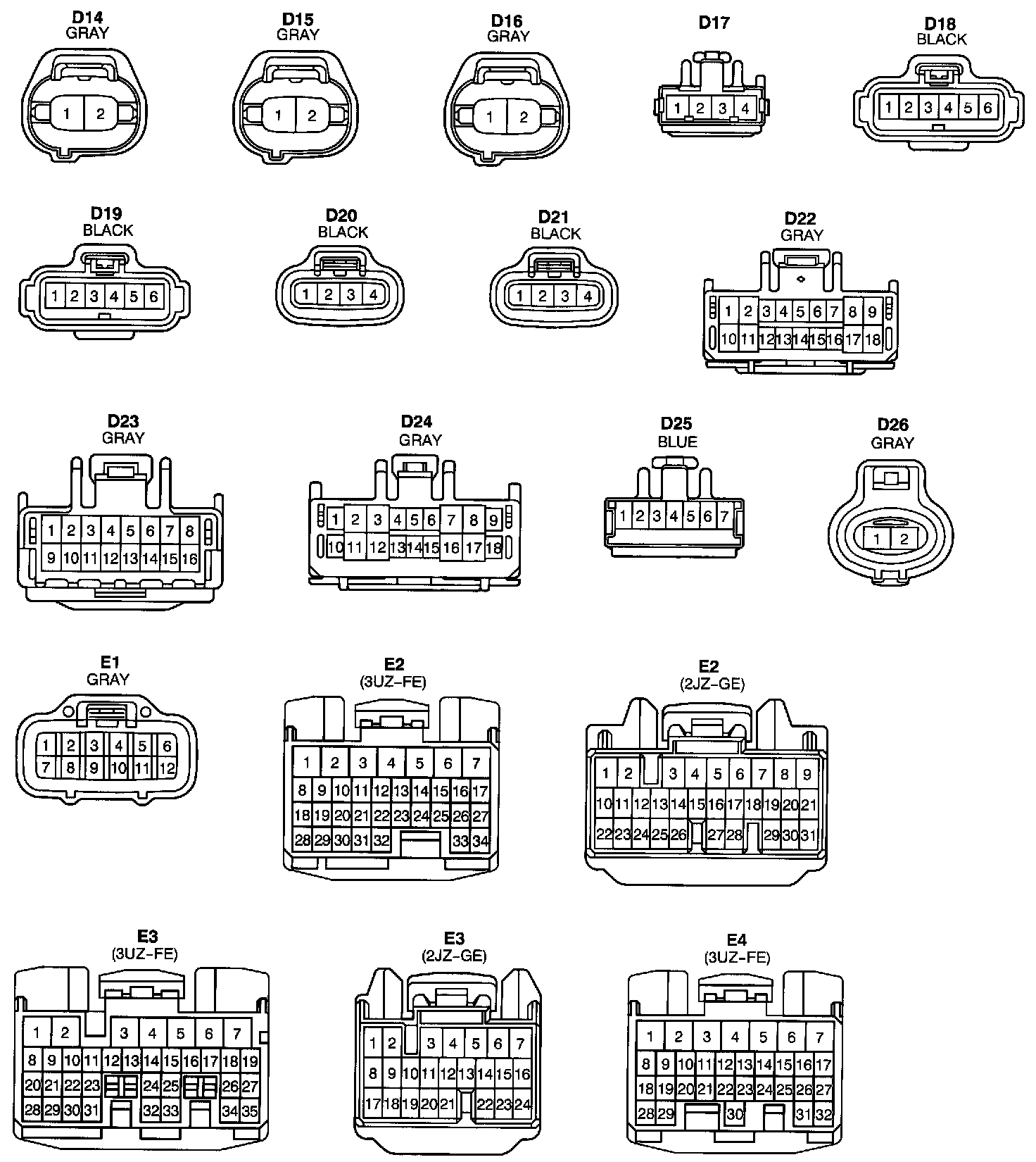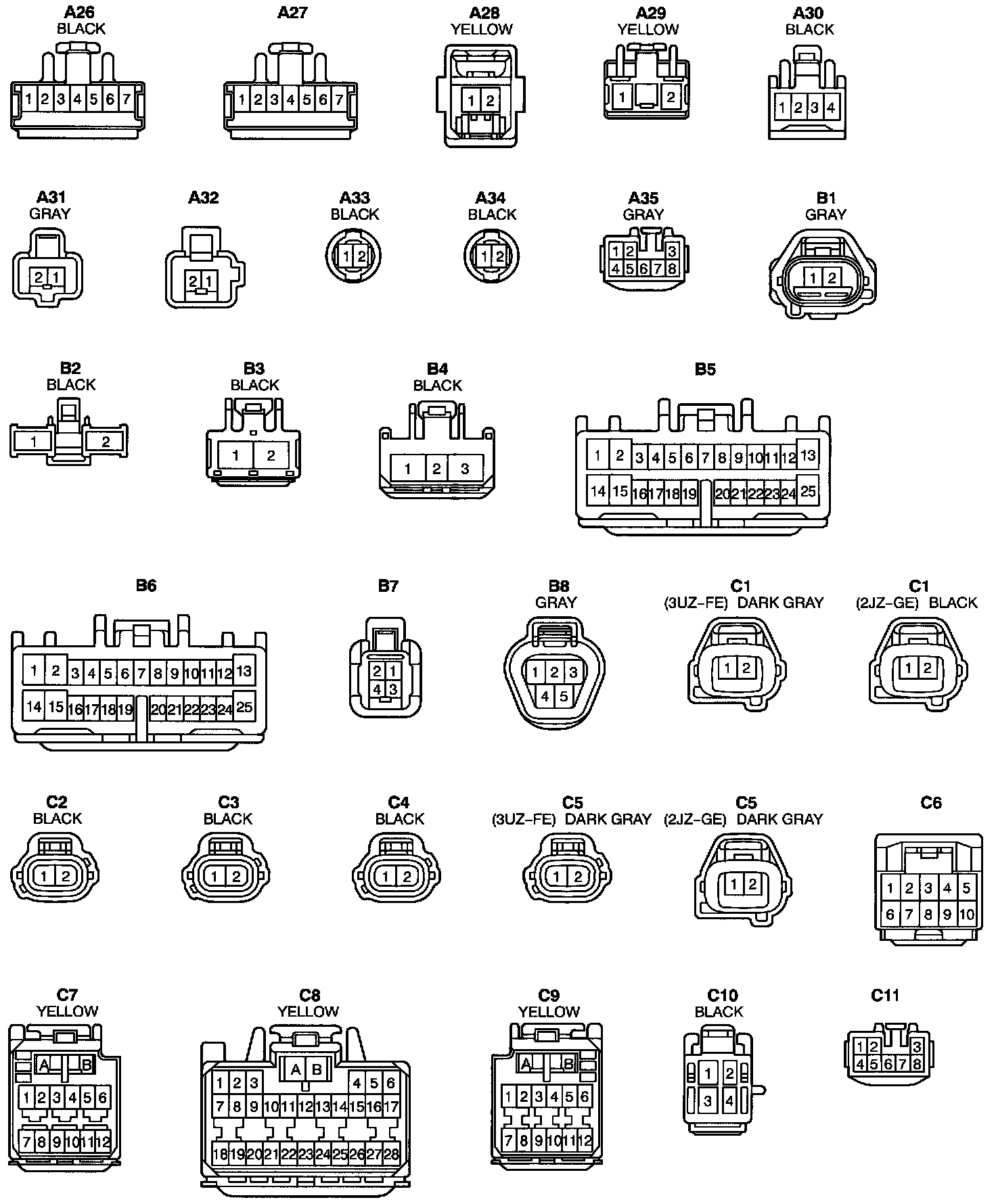 Connector Views (A26 - A35, B1 - 8, C1 - C11):