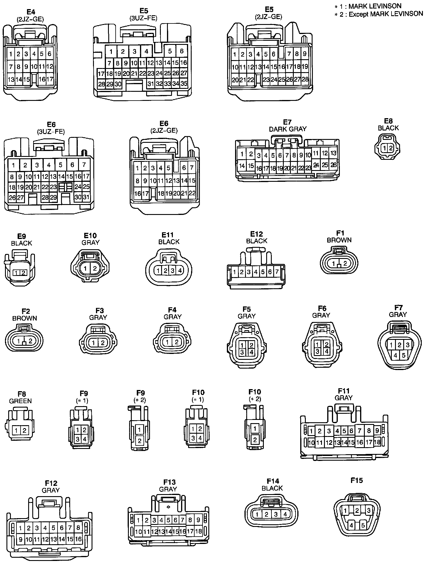 Connector Views (F16 - F17, G1 - G6, H1 - H24, I1 - I2):