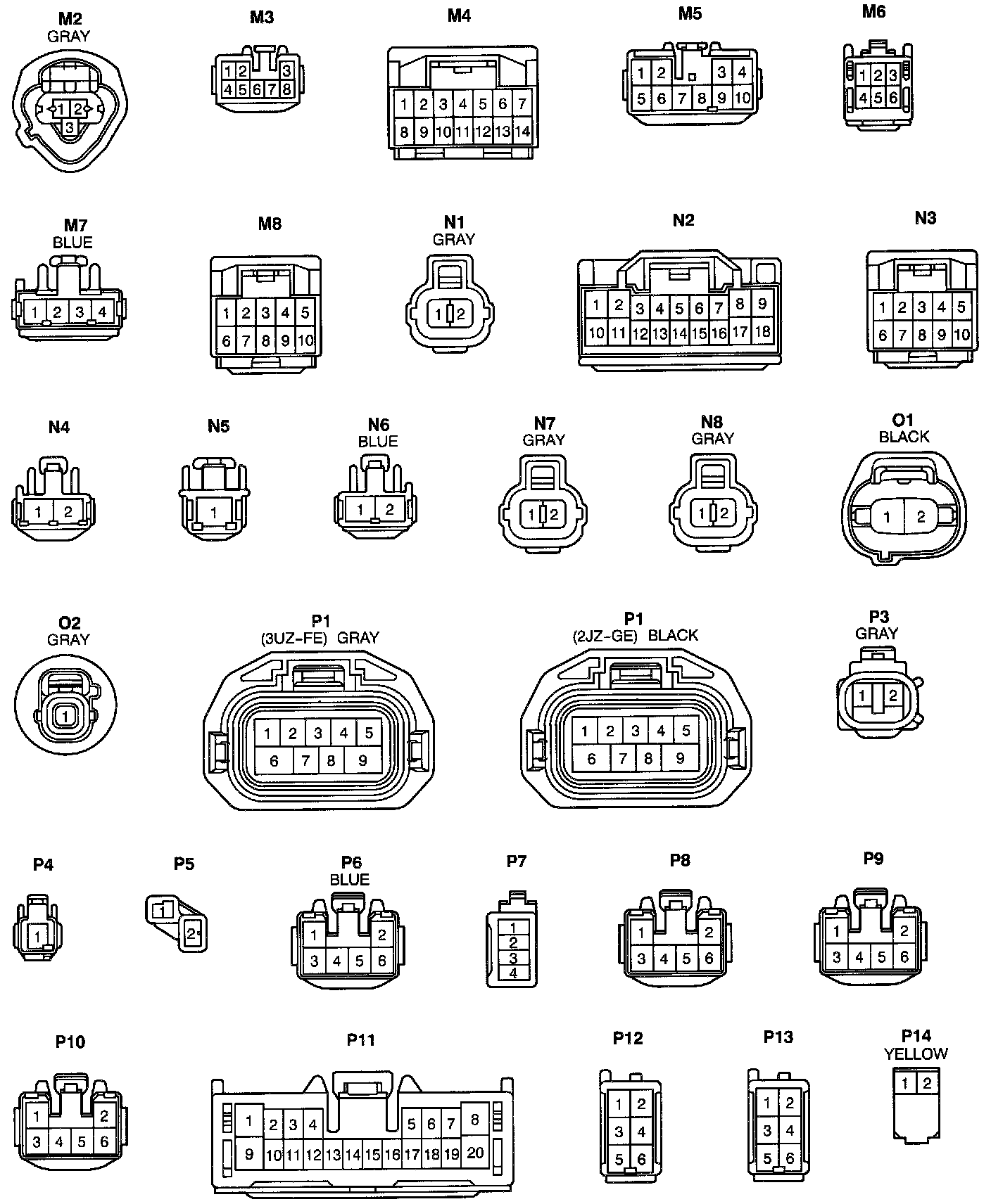 Connector Views (M2 - M8, N1 - N8, O1 - O2, P1 - 14):