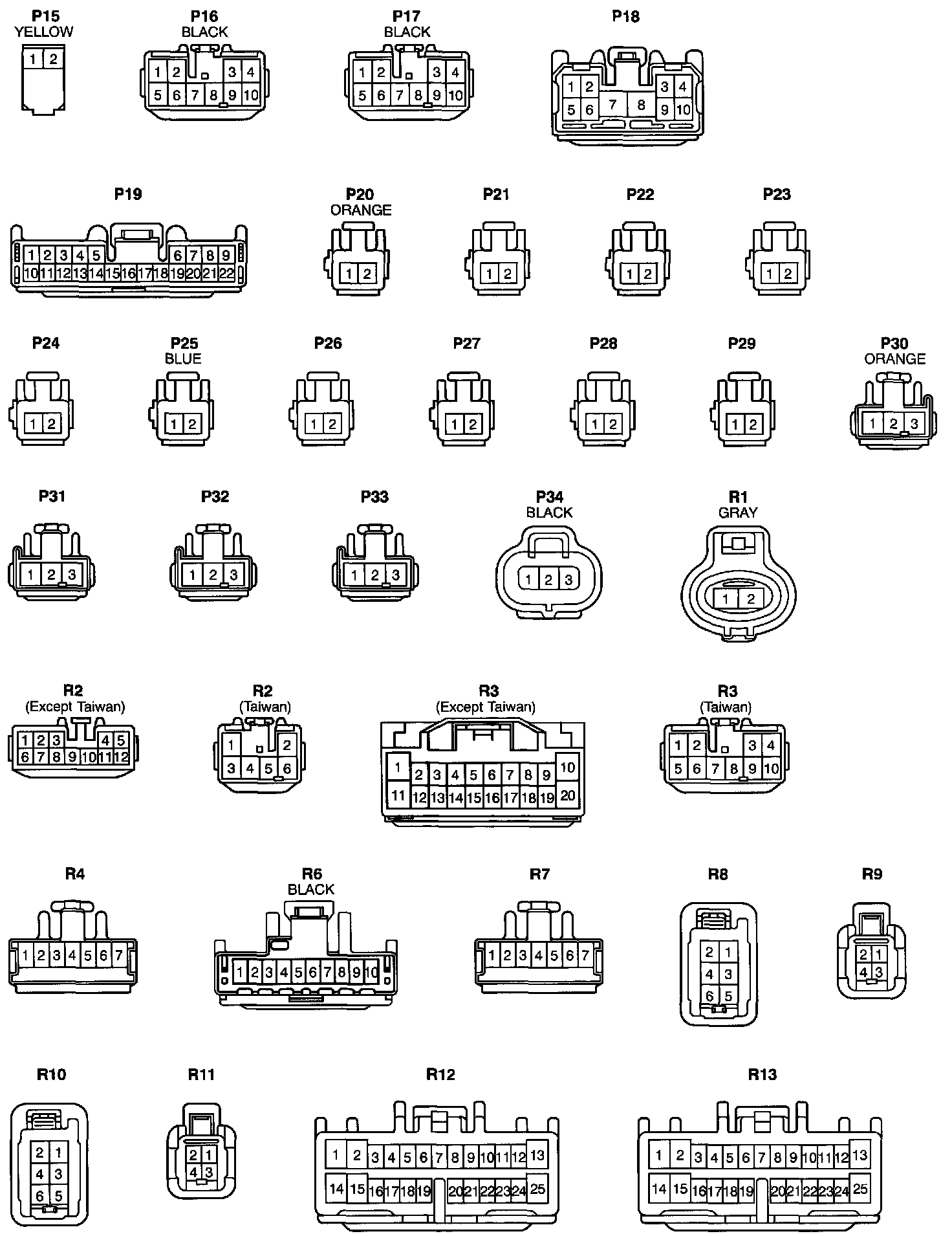 Connector Views (R14 - R17, S1 - S24, T1 - T2):