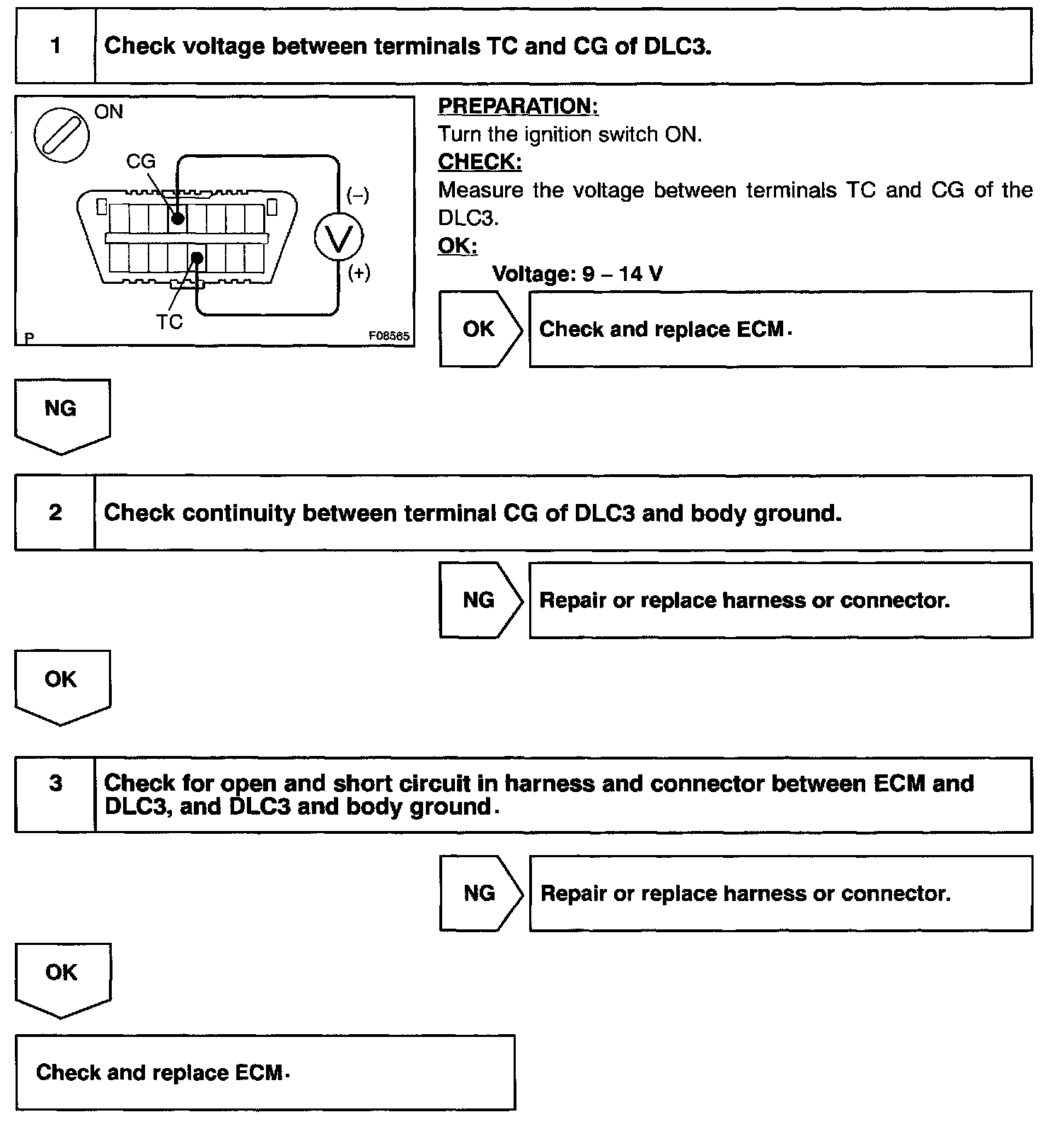 - For the above phenomenon,an open or short in the wire harness, or malfunction inside the ECM is the likely cause.