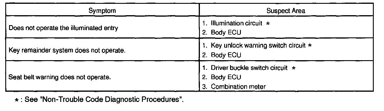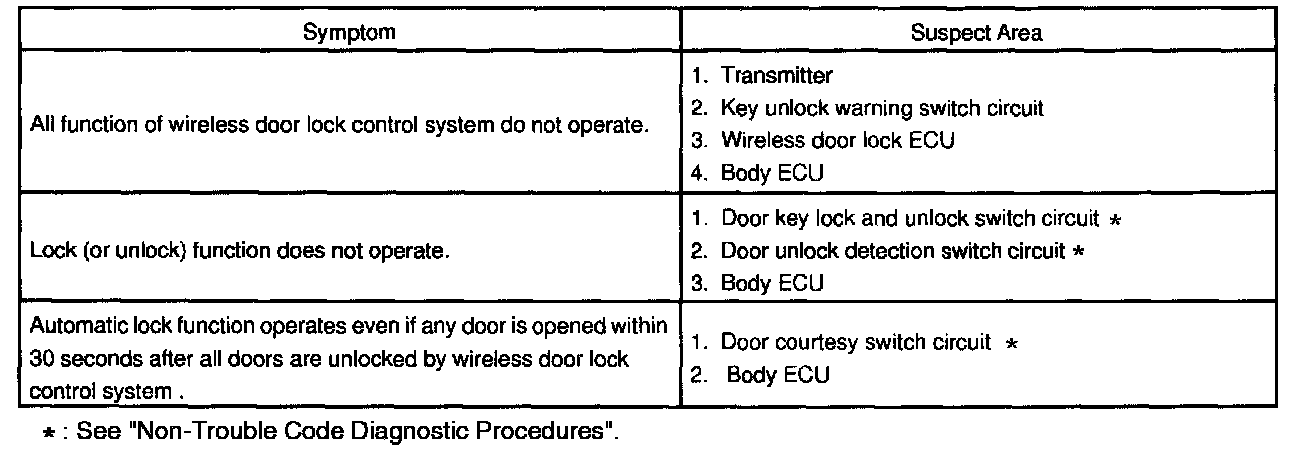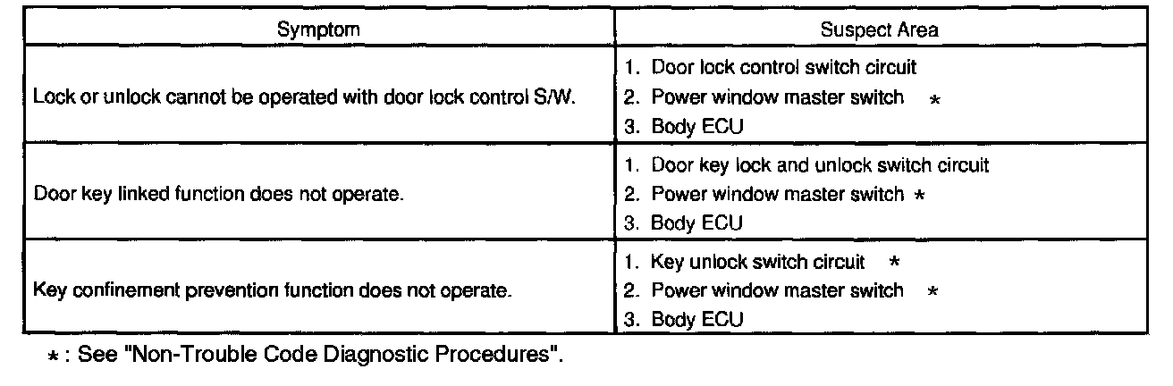 Problem Symptoms Table - Door Lock Control: