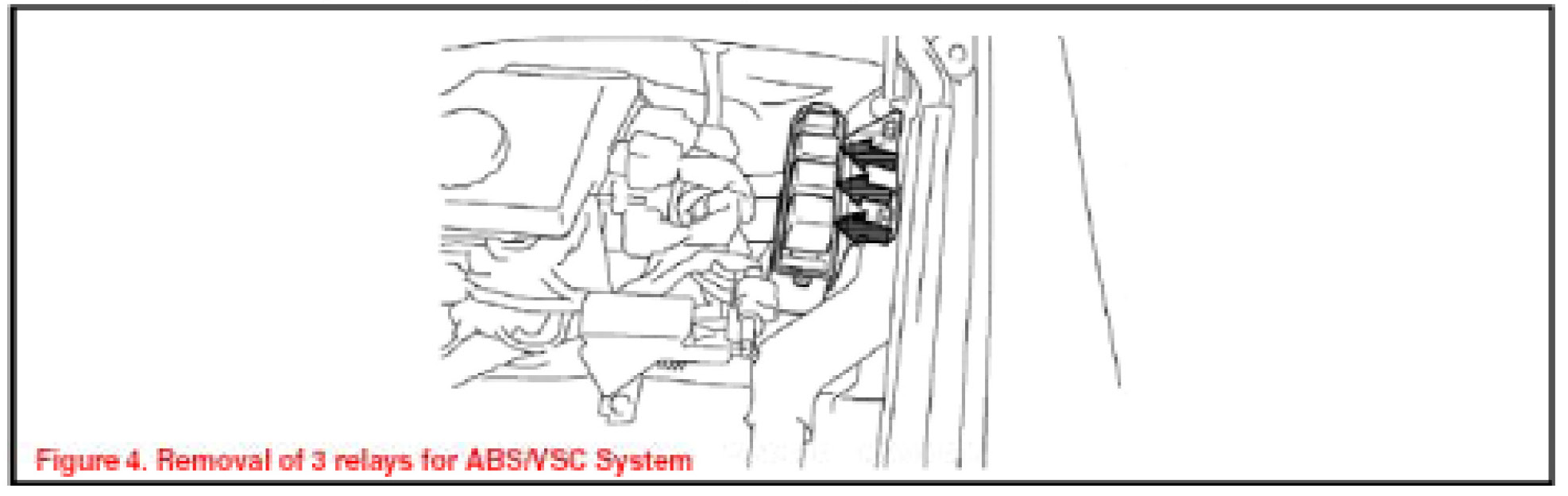 2. Remove the 3 relays for the ABS/VSC system (See Figure 4)