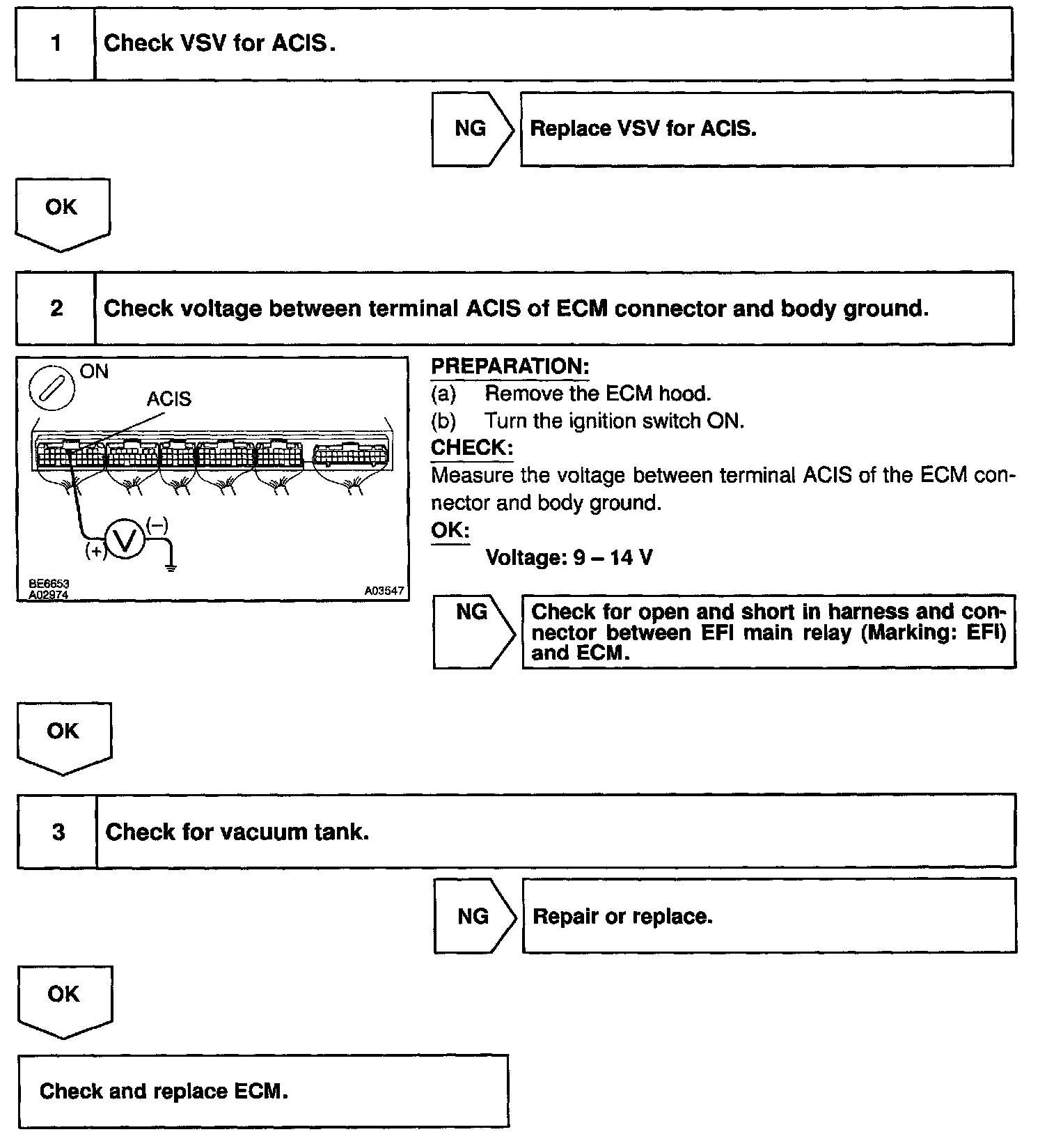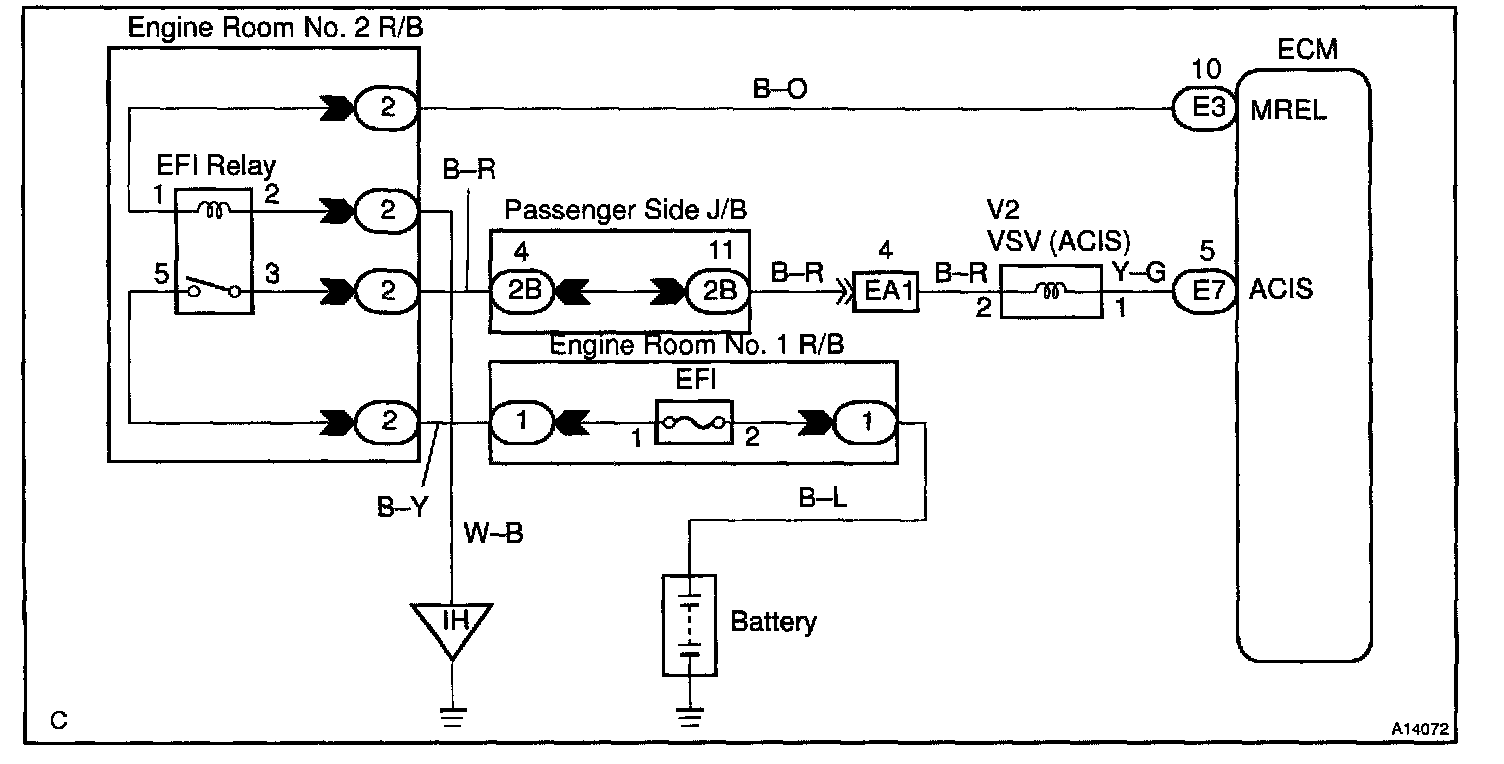 This circuit opens and closes the Intake Air Control Valve (IACV) in response to the engine load in order to increase the intake efficiency (ACIS: Acoustic Control Induction System).