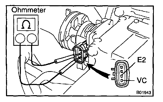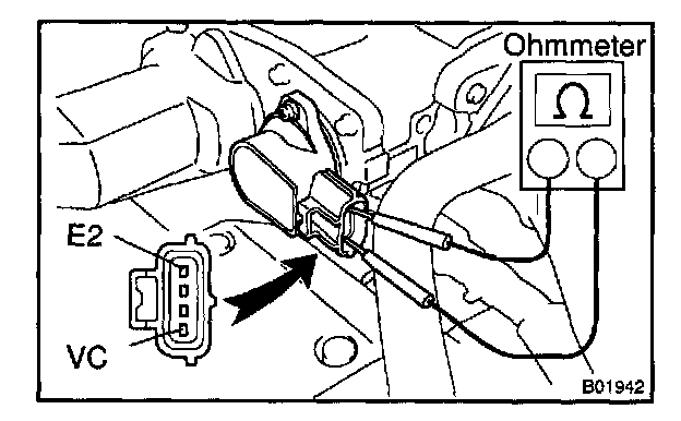 b. Using an ohmmeter, measure the resistance between terminals VC and E2.