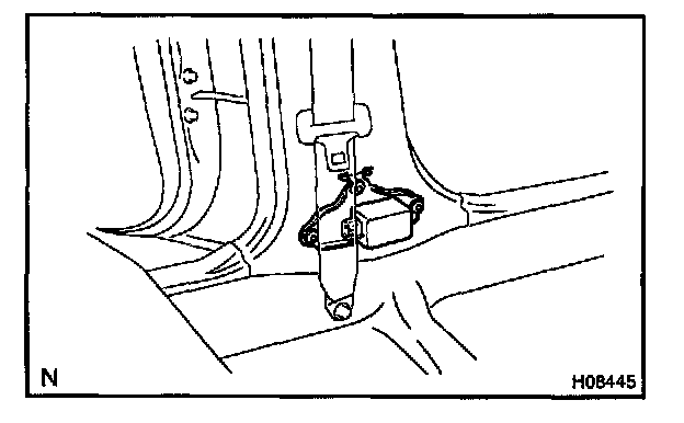The side airbag sensor assembly is mounted in the LH and RH center pillars. The side airbag sensor assembly consists of a lateral deceleration sensor, safing sensor and diagnosis circuit, etc. It receives signals to the airbag sensor assembly to judge from the side airbag sensors whether the SRS side airbag must be activated or not.