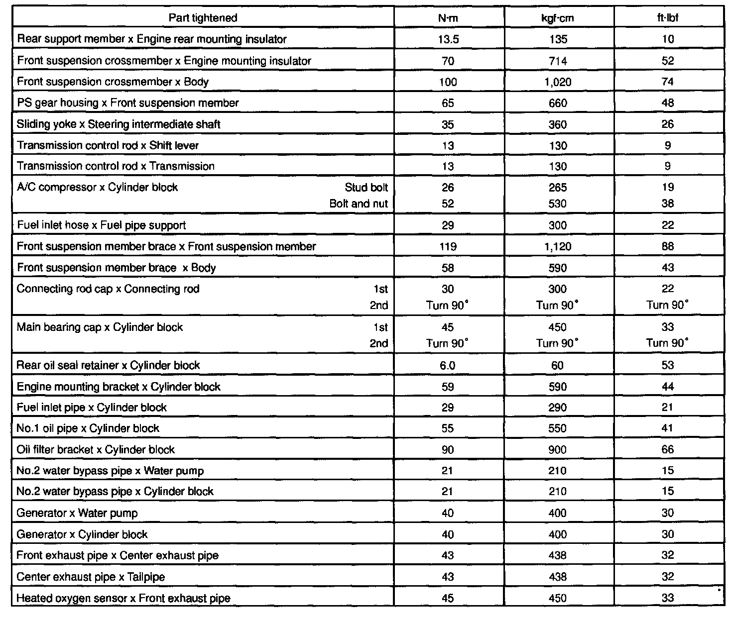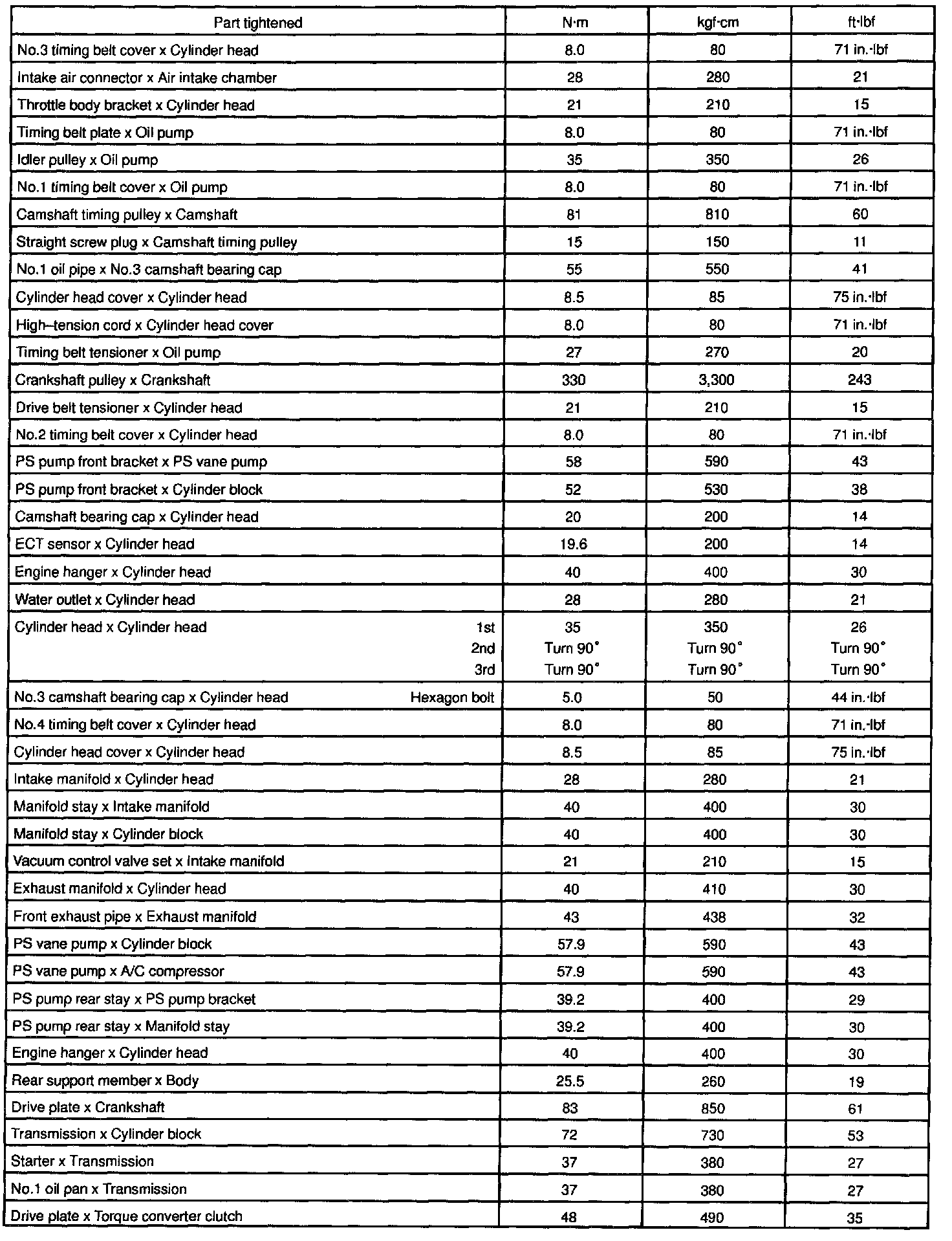 Tightening Specifications