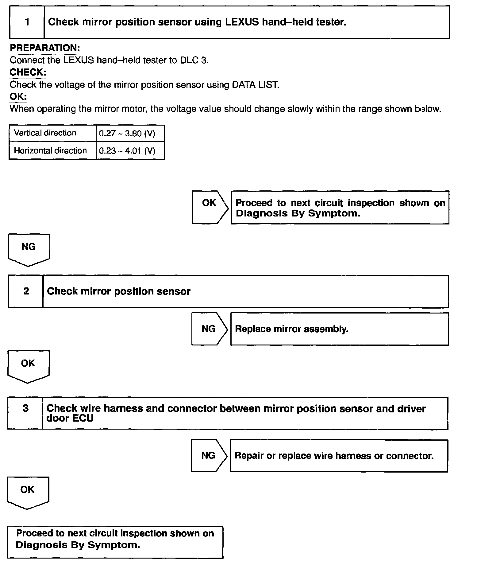 The position detected by the mirror position detection sensor will be memorized in the seat ECU.