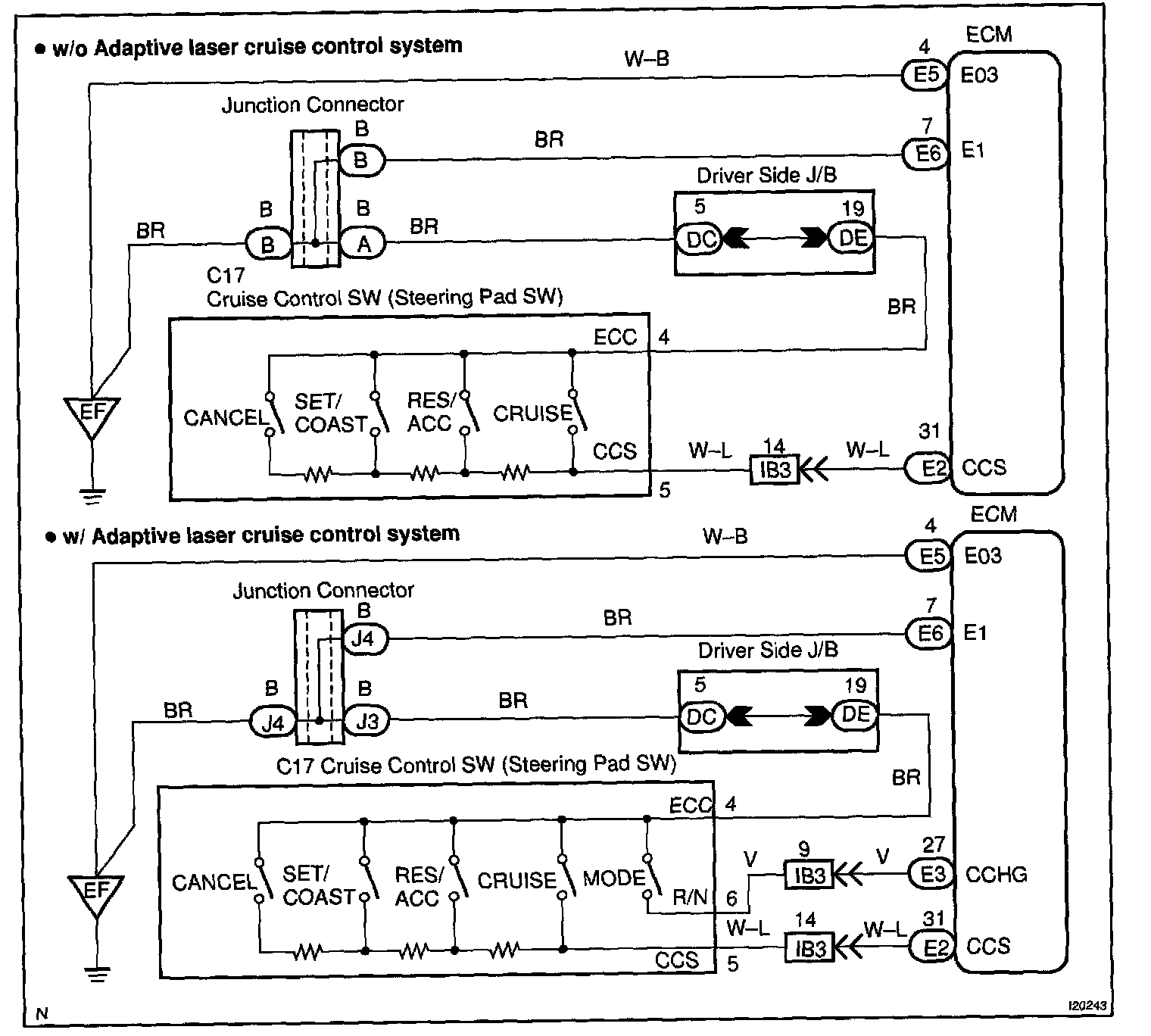 CIRCUIT DESCRIPTIONThis circuit carries the SET/COAST, RESUME/ACCEL and CANCEL voltage signals to the ECU.