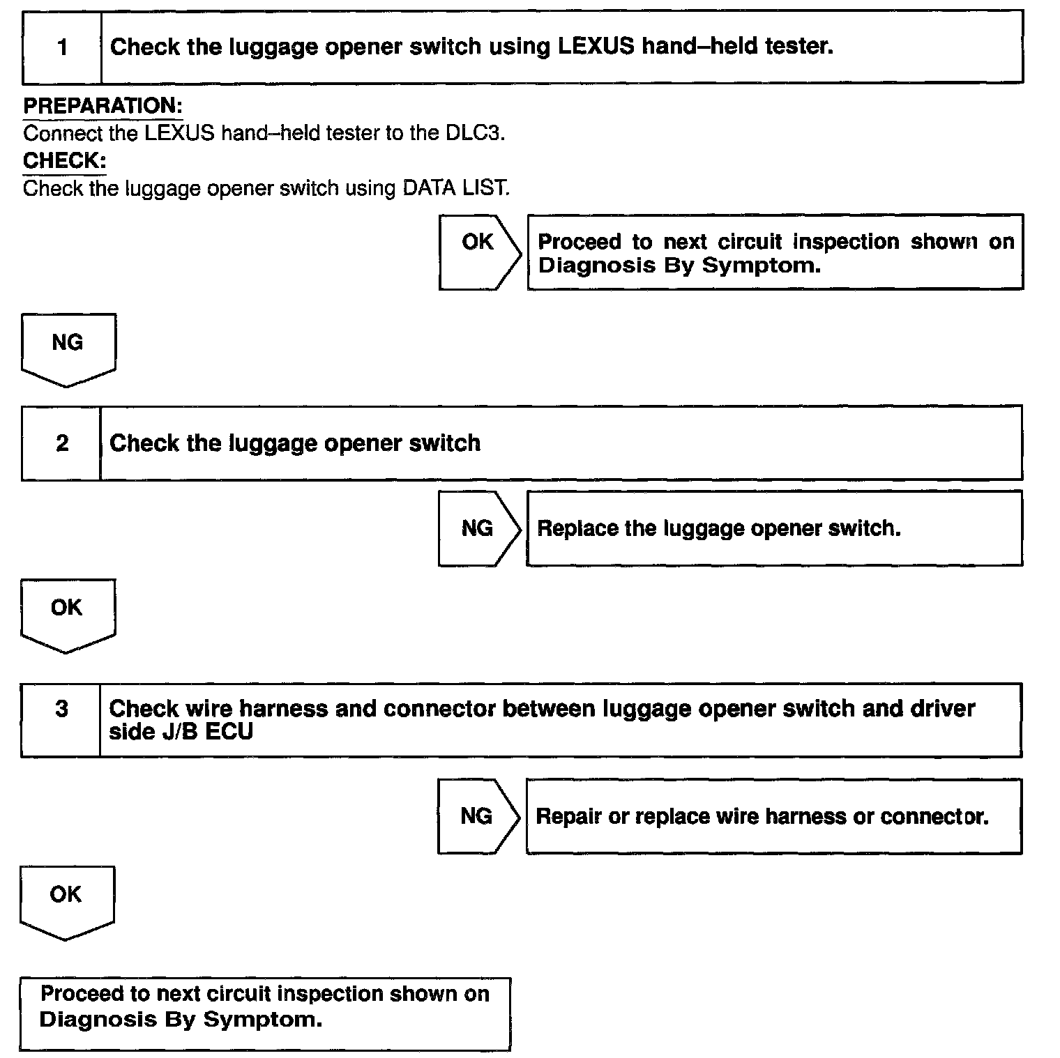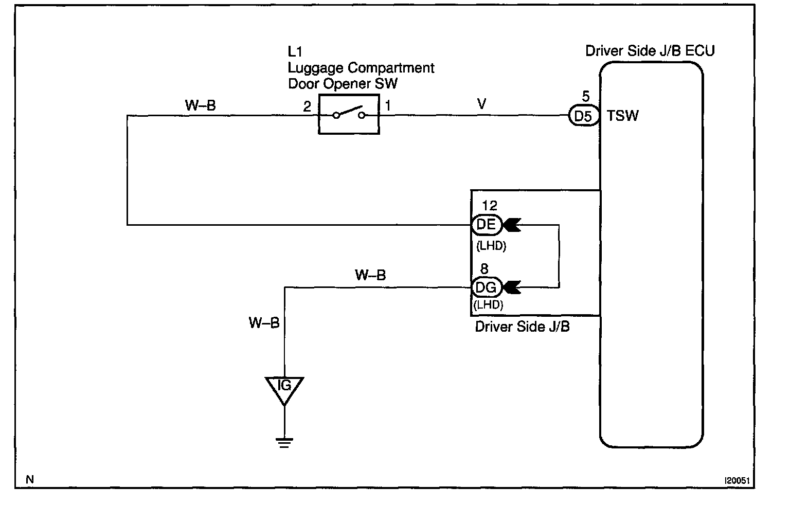 CIRCUIT DESCRIPTIONThis circuit detects the conditions of the luggage door opener switch.