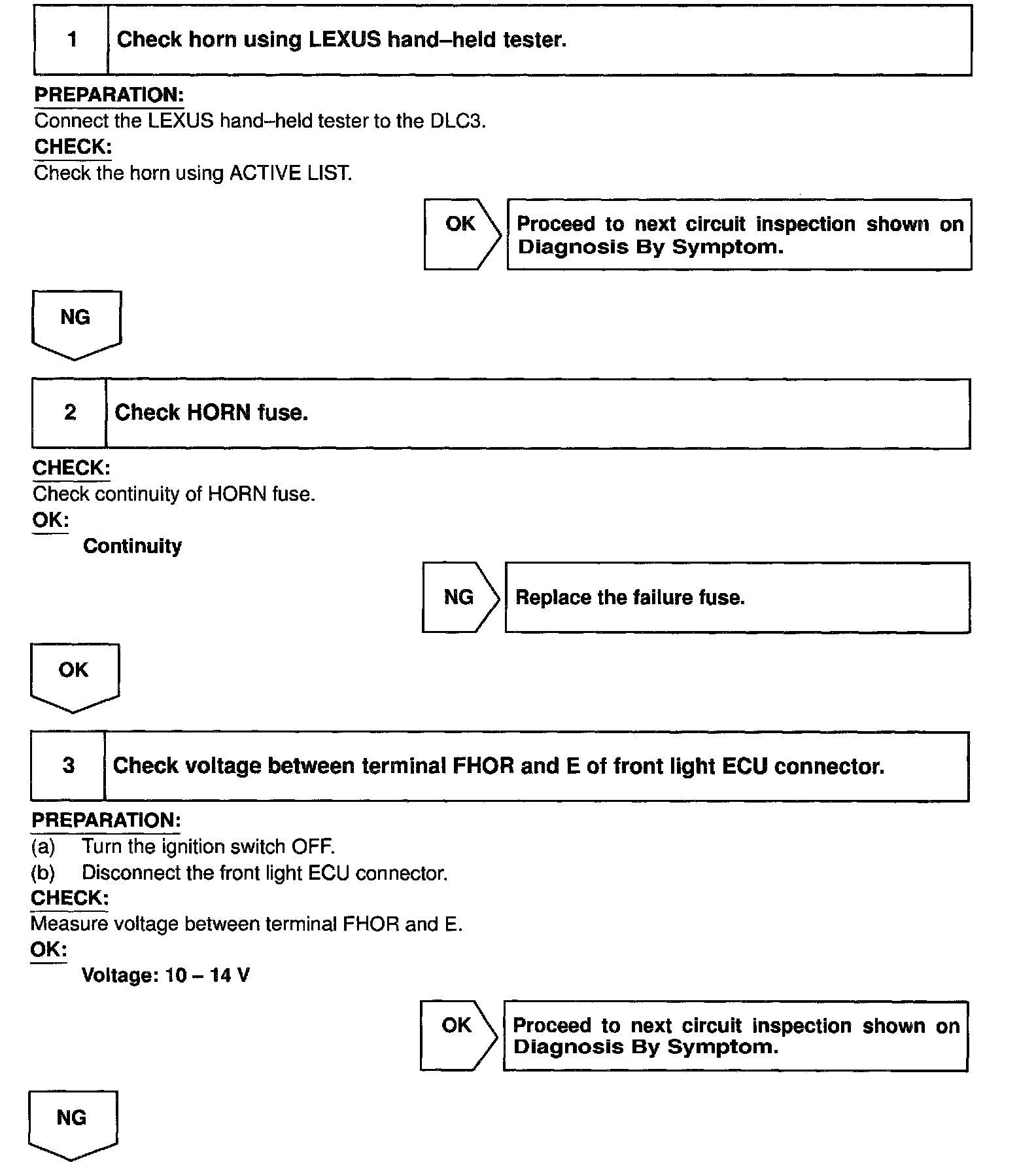 In this condition, if any of the following operations is done, in the ECU turn the horn relay off to stop, thus horns from blowing:
