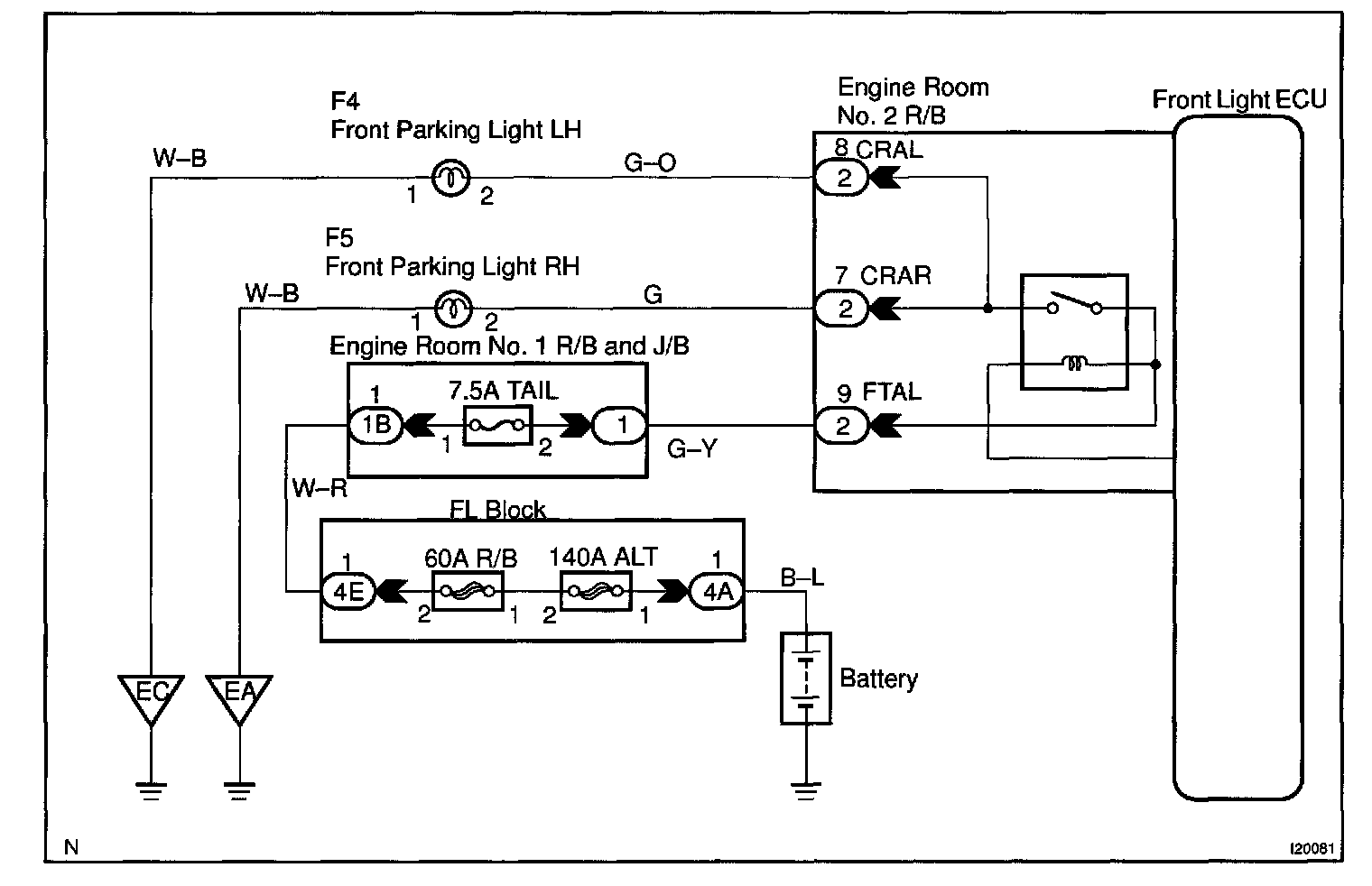 Front Light ECU receives turn signal switch information from the combination switch and lights the parking light.