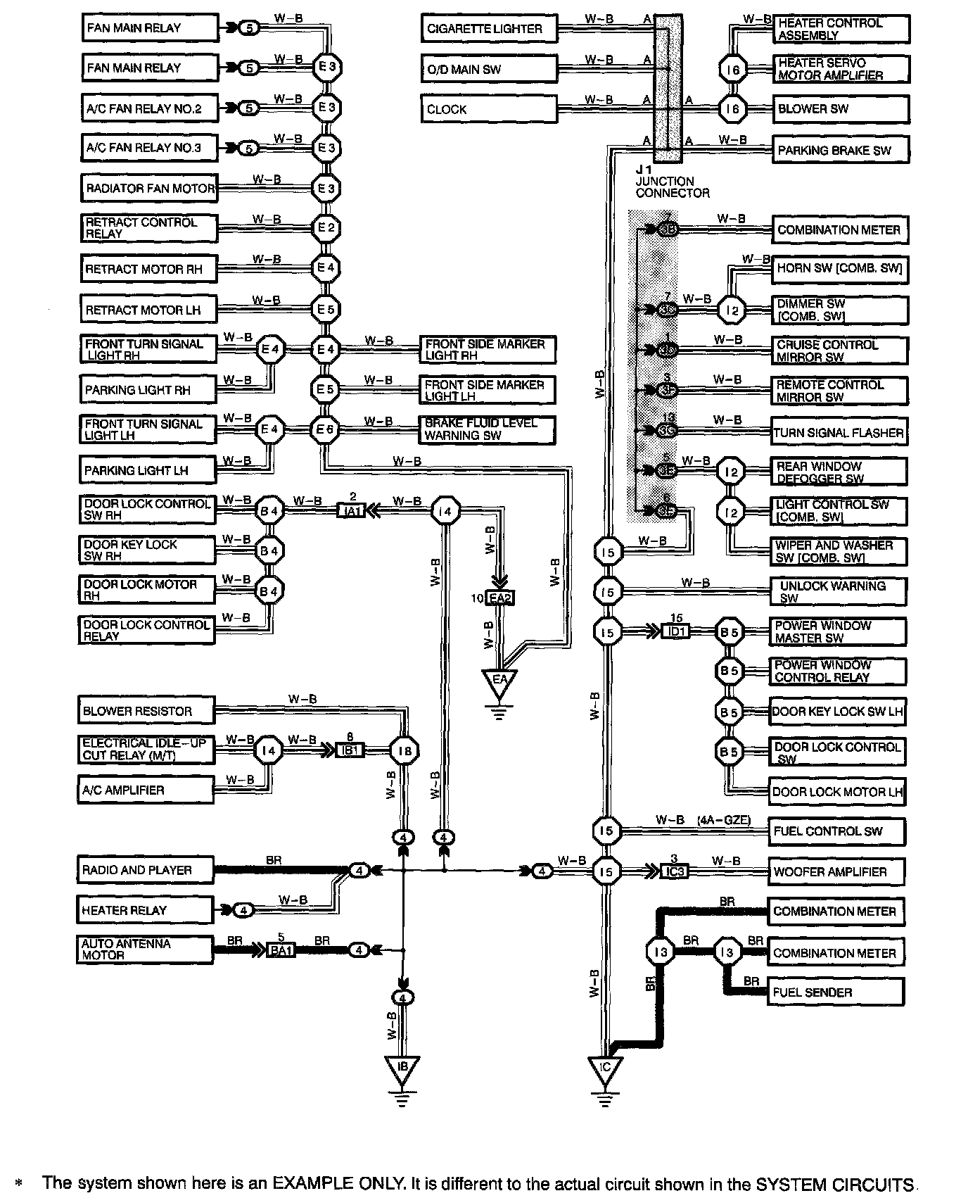 HOW TO READ GROUND POINTSThe ground points circuit diagram shows the connections from all major parts to the respective ground points. When troubleshooting a faulty ground point, checking the system circuits which use a common ground may help you identify the problem ground quickly. The relationship between ground points (EA, IB and IC shown) can also be checked this way.
