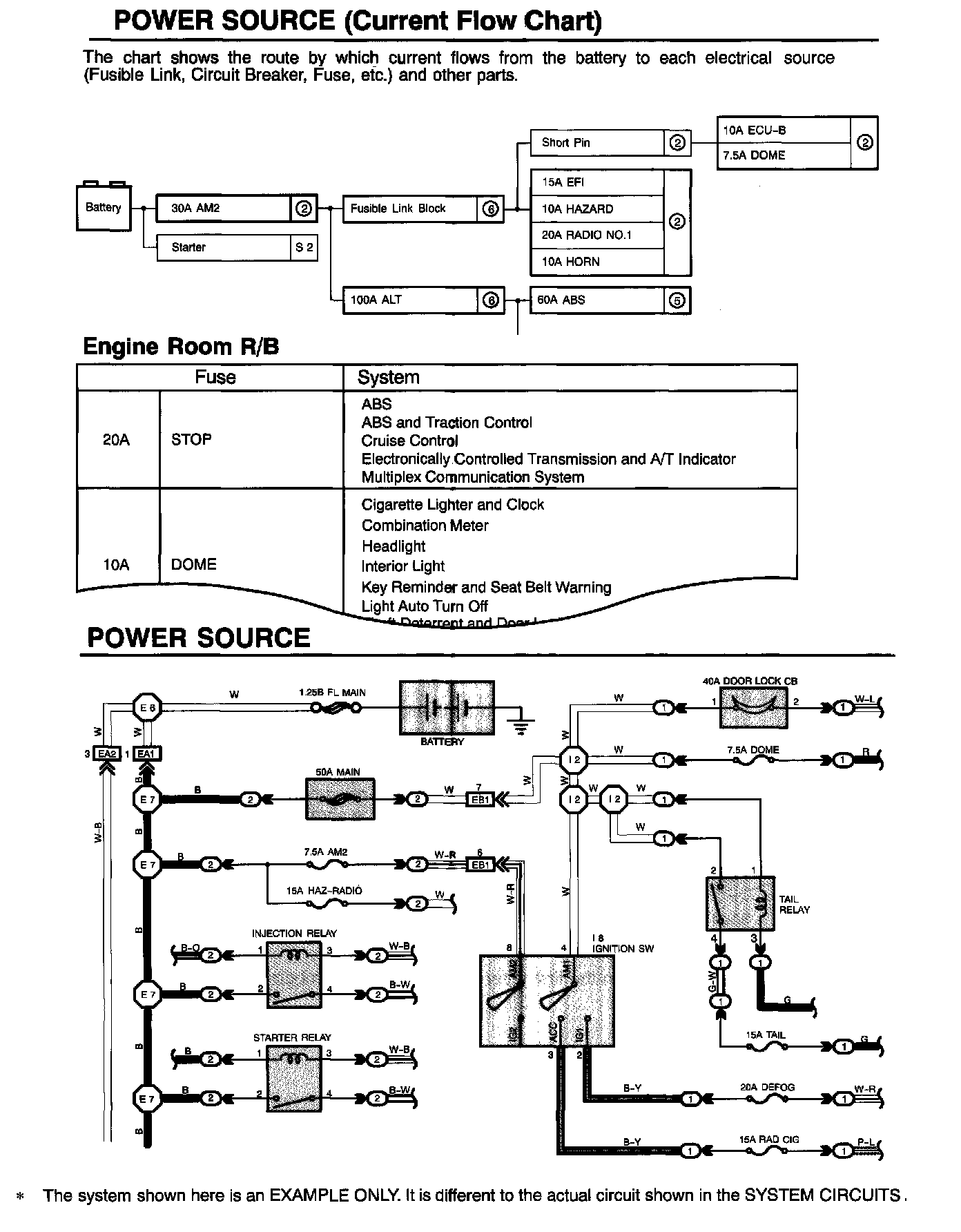 HOW TO READ POWER SOURCEThe "Current Flow Chart", describes which parts each power source (fuses, fusible links, and circuit breakers) transmits current to. In the Power Source circuit diagram, the conditions when battery power is supplied to each system are explained. Since all System Circuit diagrams stand from the power source, the power source system must be fully understood.