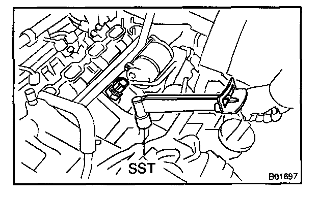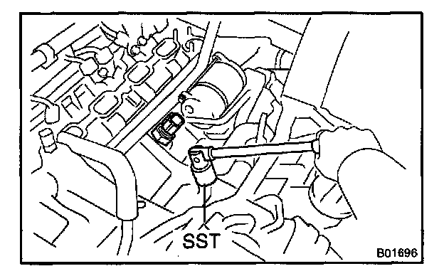 b. Using SST, remove the 2 knock sensors. SST 0986-30010