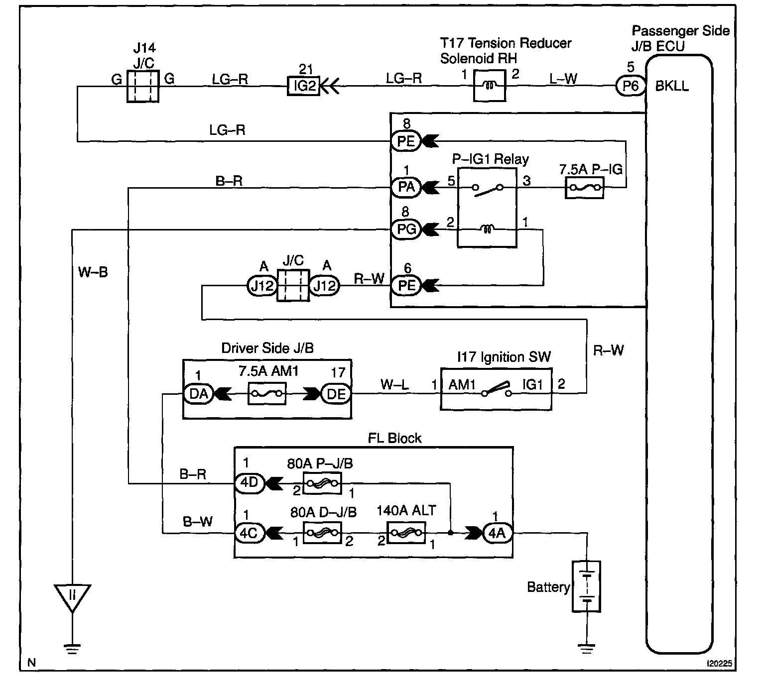 Passenger side J/B ECU receives the seat belt buckle switch signal to operate the tension reducer.