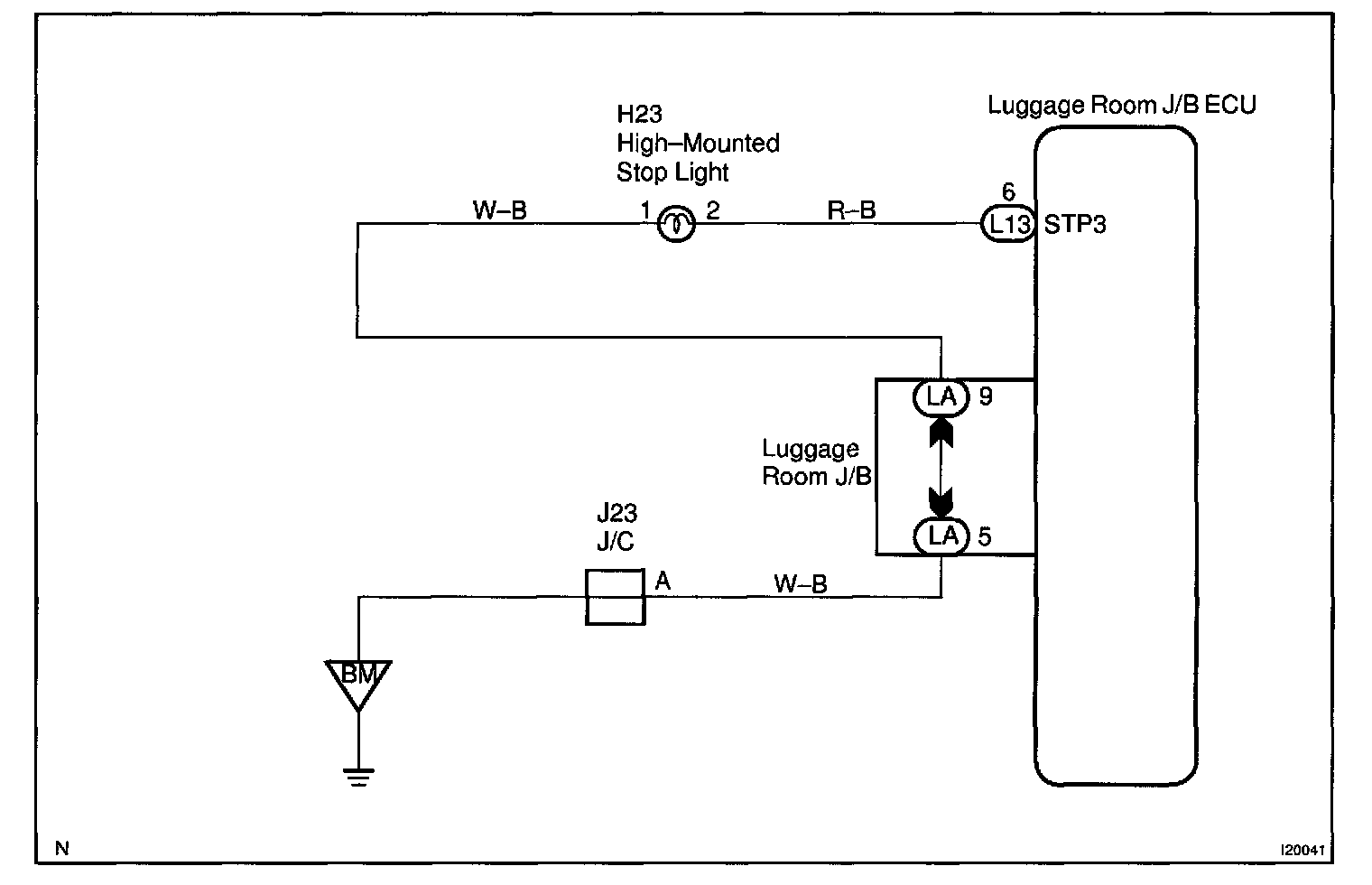 Receiving the brake pedal signal from the luggage room J/B ECU makes the stop light come on.