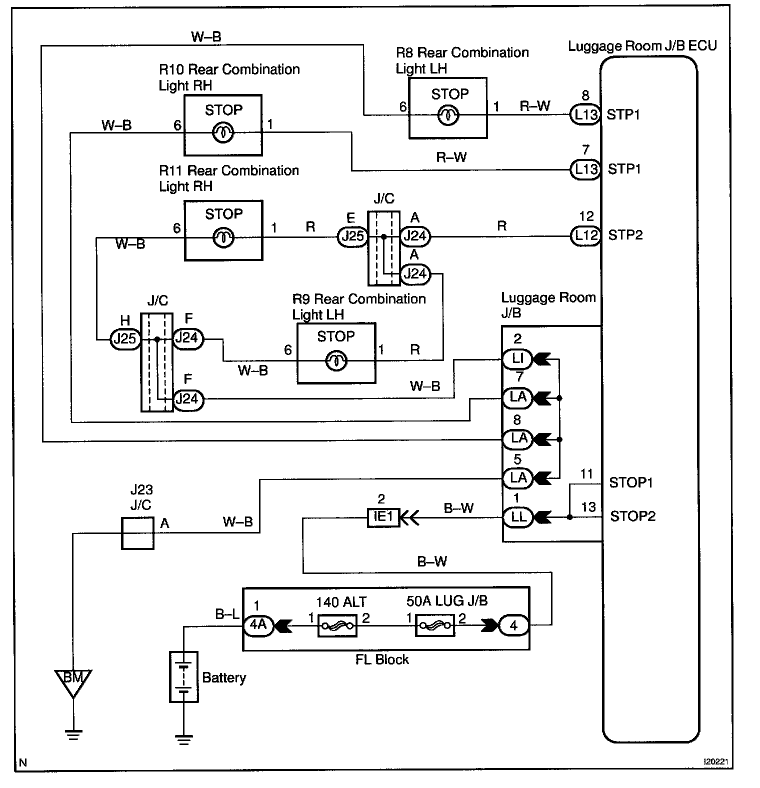 Receiving the brake pedal signal from the luggage room J/B ECU makes the stop light come on.