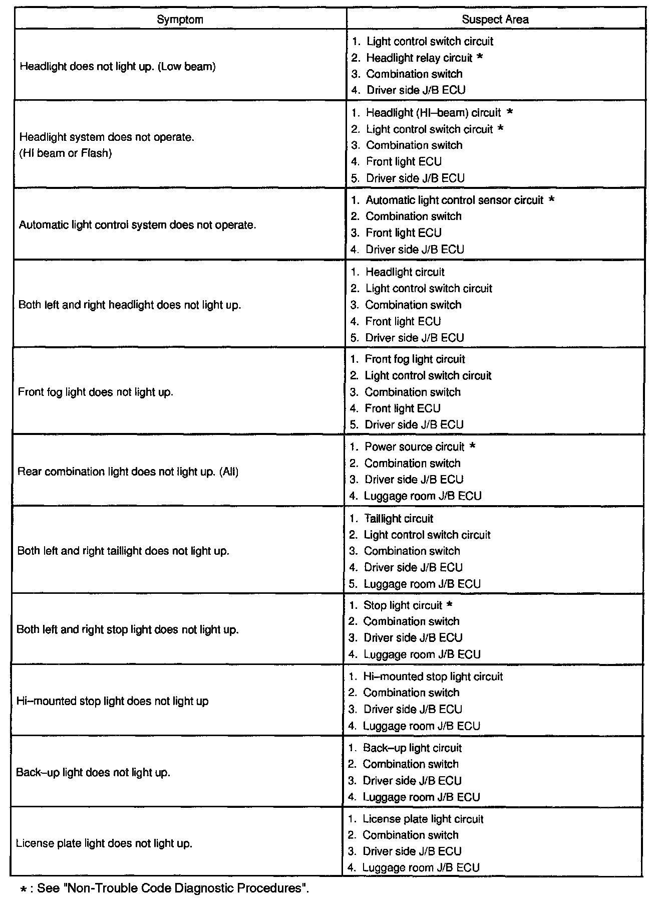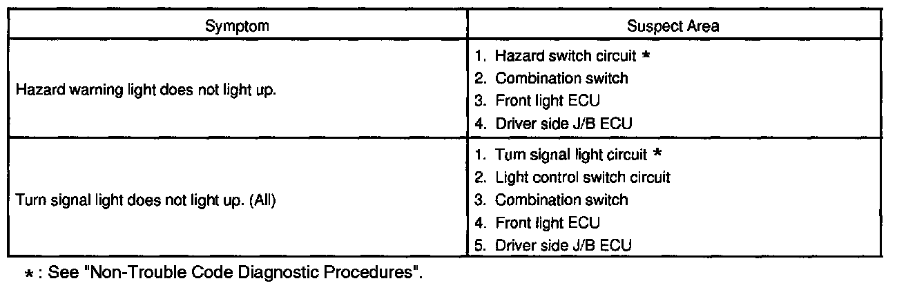 Problem Symptoms Table - Turn Signal And Hazard Warning System: