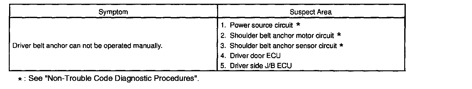 Problem Symptoms Table - Power Shoulder Belt Anchorage System: