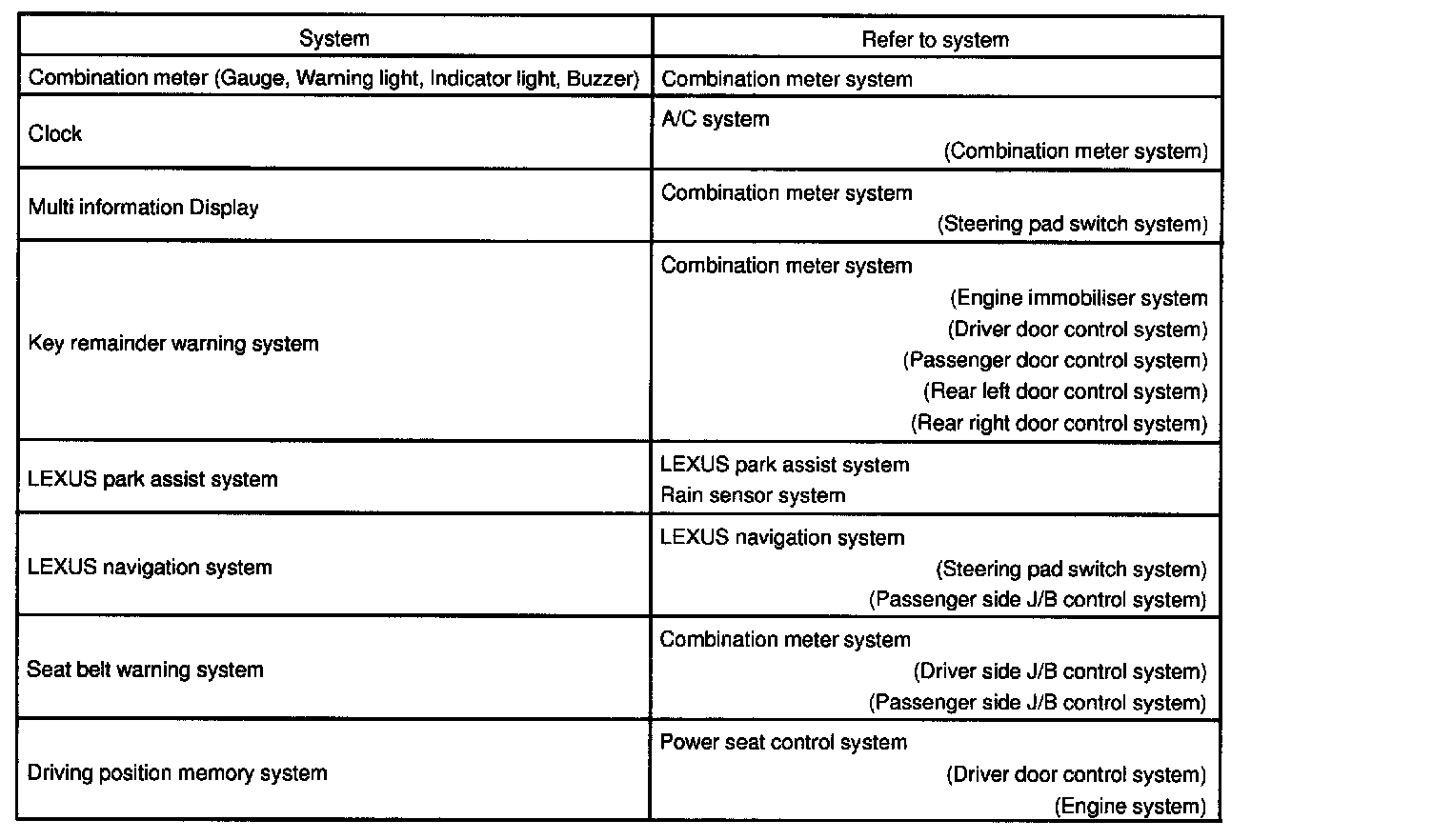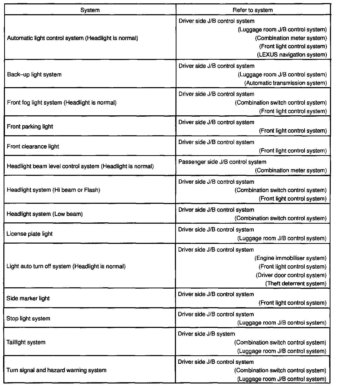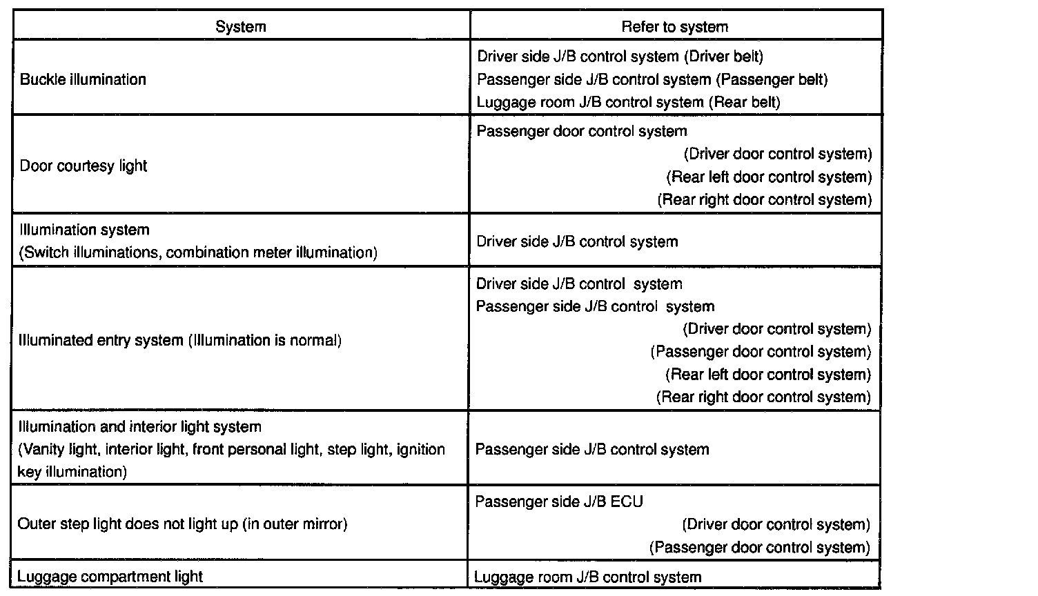PROBLEM SYMPTOMS TABLEProblem Symptoms Table - Lighting System: