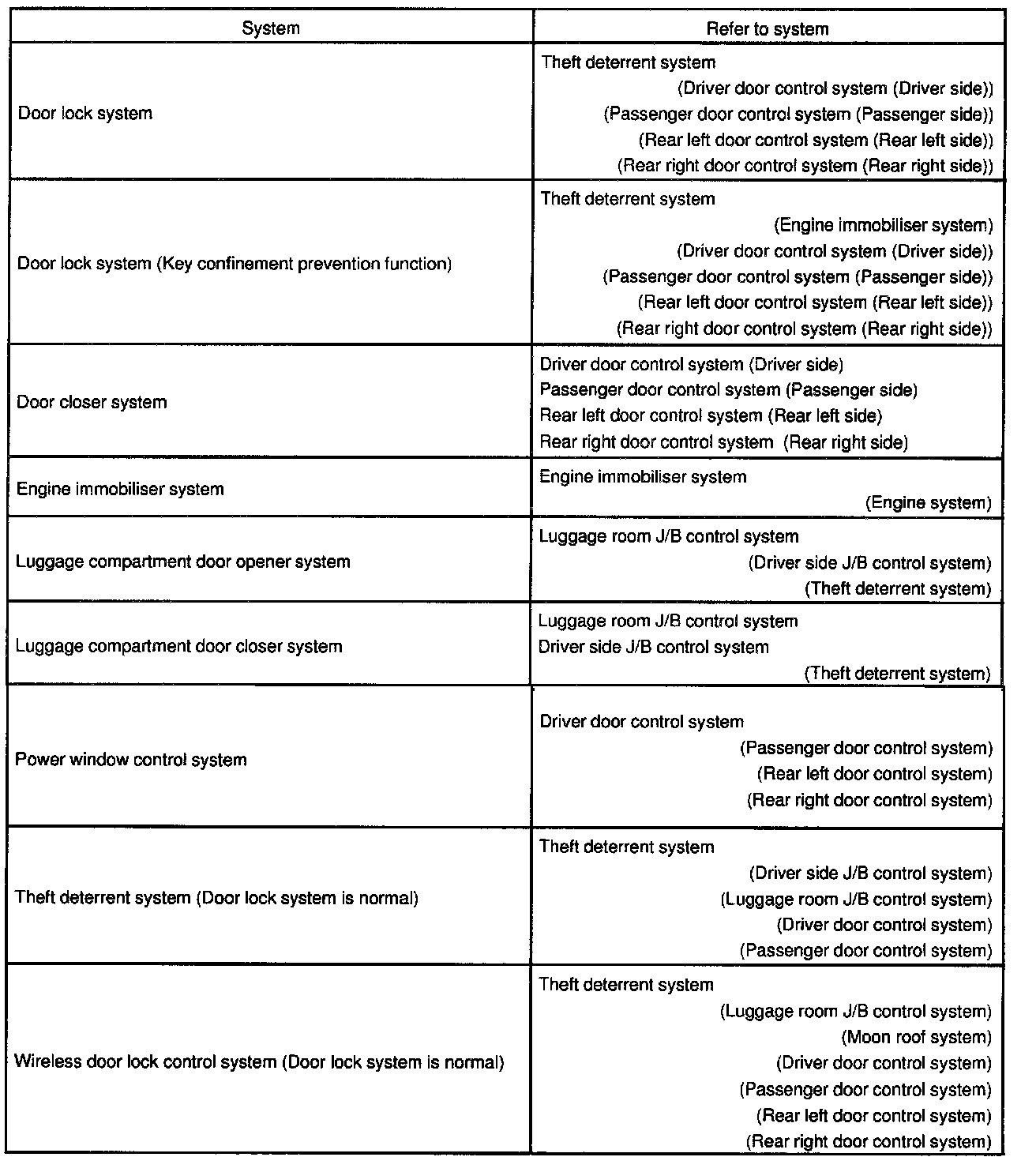 Problem Symptoms Table - Window, Door Lock And Security System: