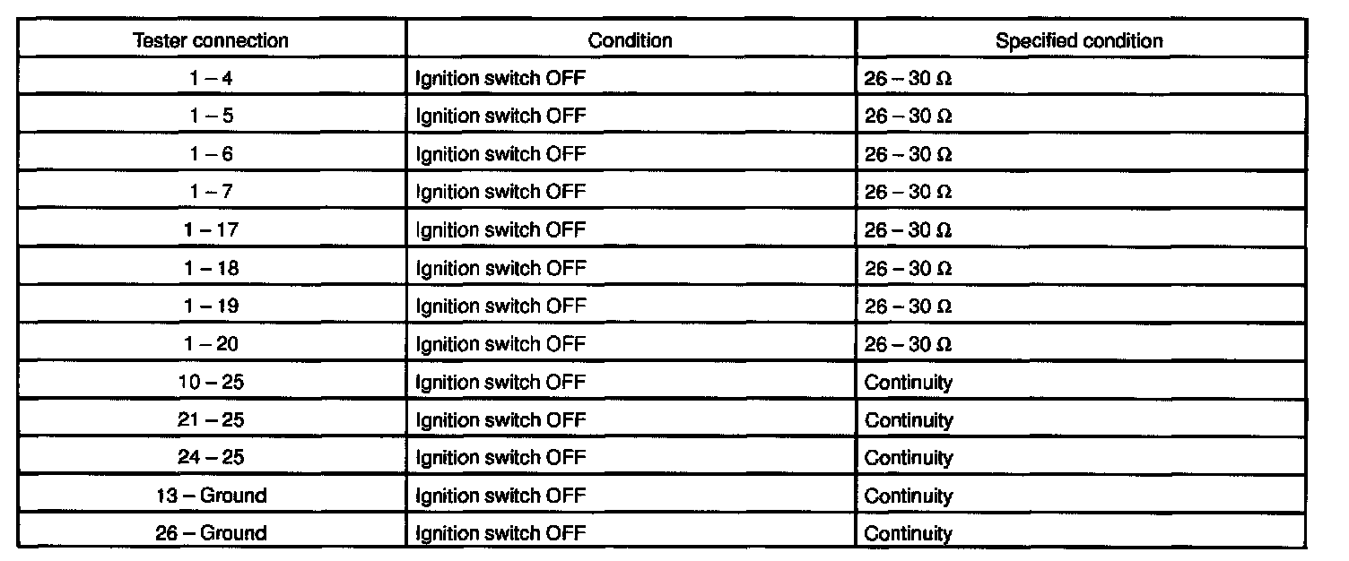 Connect the connector from the ECU and inspect the connector on the back side, as shown in the chart.