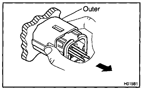 HINT: Be sure to hold both flank sides of the outer. If holding the top and bottom sides, it will obstruct disconnection.