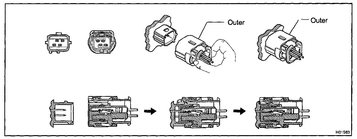 b. As they are fitted in, the outer slides rearward. Press it until the outer returns to its original position again.