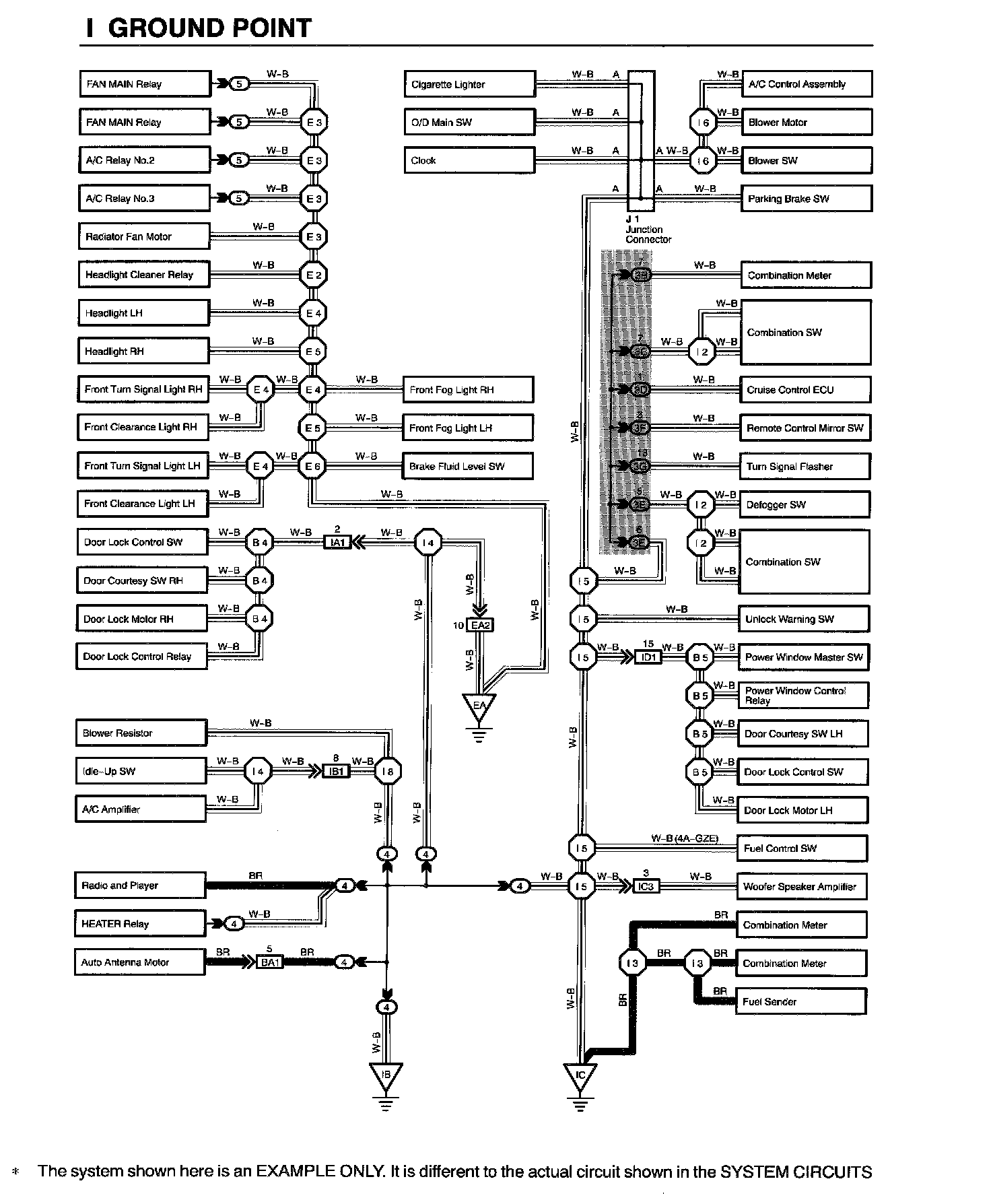 HOW TO READ GROUND POINTSThe ground points circuit diagram shows the connections from all major parts to the respective ground points. When troubleshooting a faulty ground point, checking the system circuits which use a common ground may help you identify the problem ground quickly. The relationship between ground points ([EA], [IB] and [IC] shown ) can also be checked this way.
