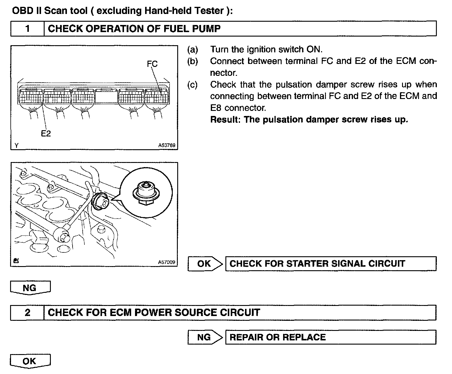 While the NE signal is generated (engine running), the ECM keeps Tr ON (circuit opening relay ON) and the fuel pump also keeps operating.