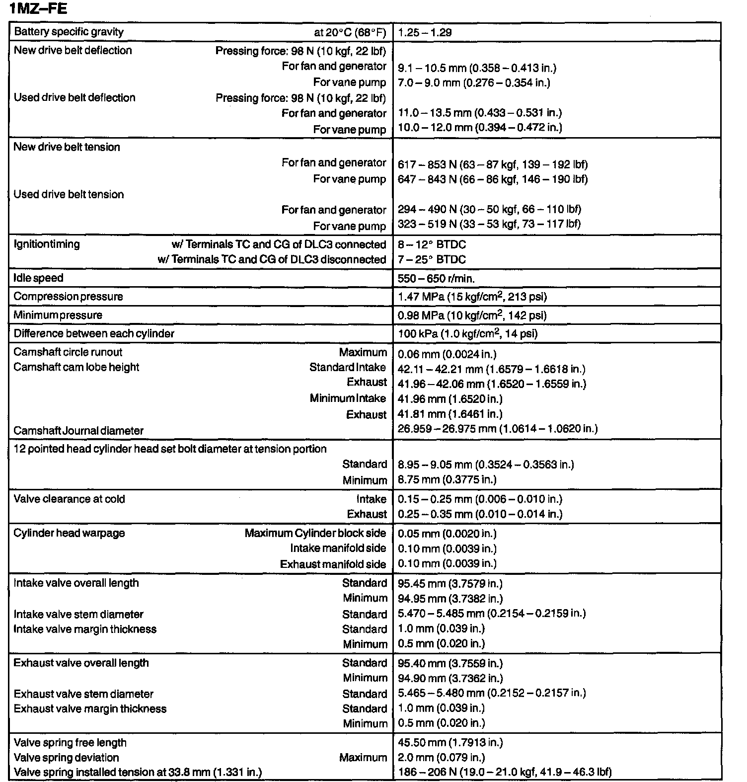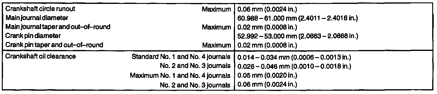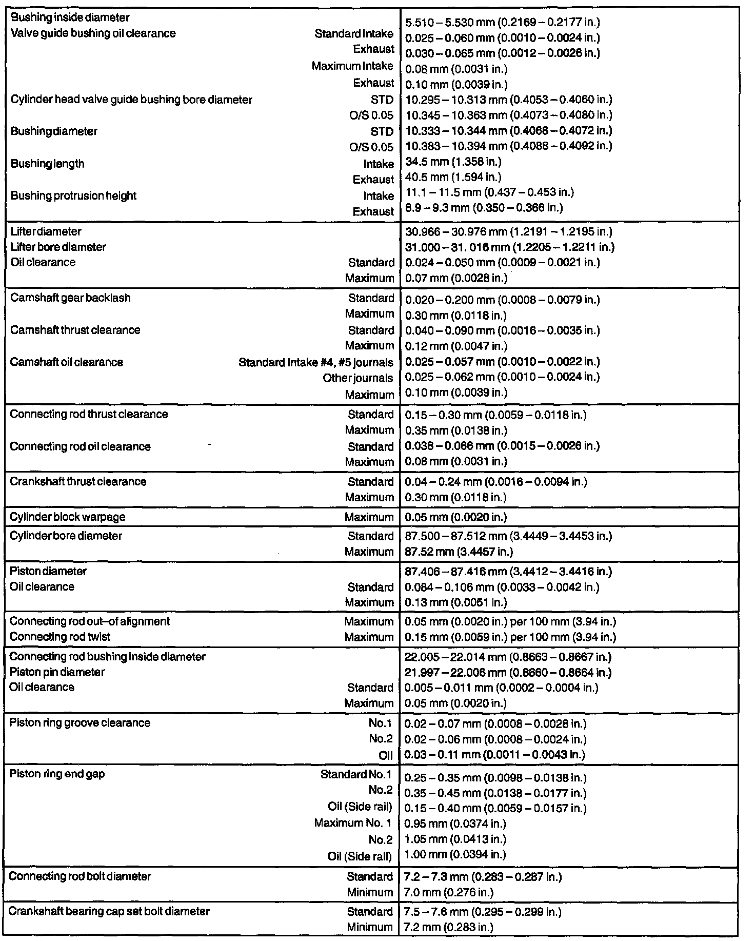 ENGINE MECHANICAL SERVICE DATA: