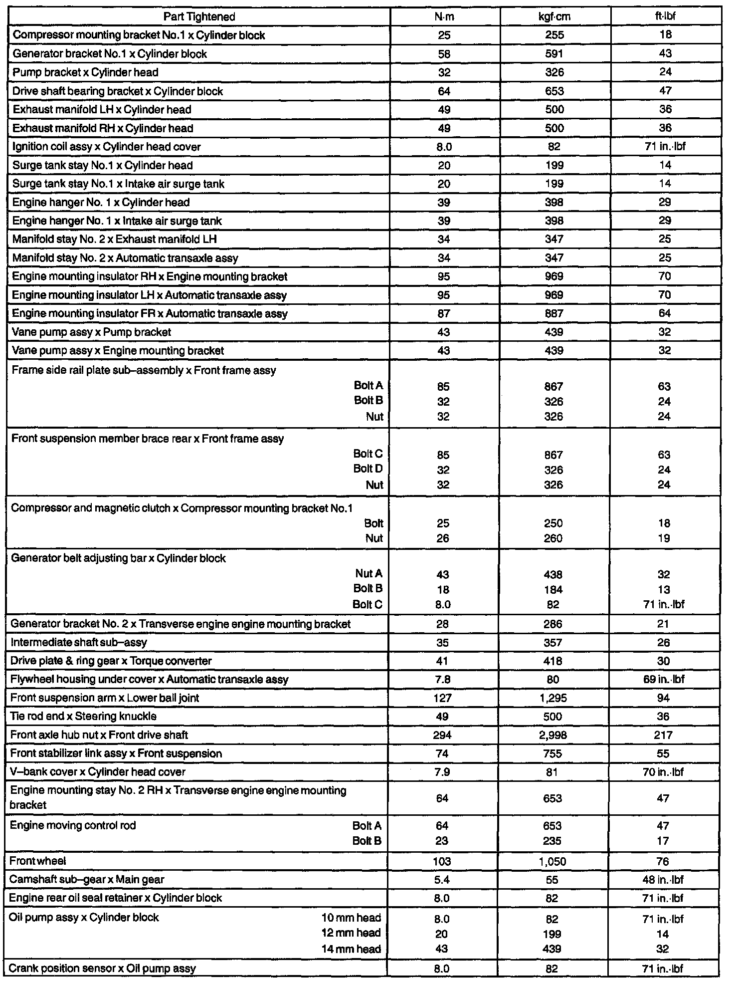 TORQUE SPECIFICATION: