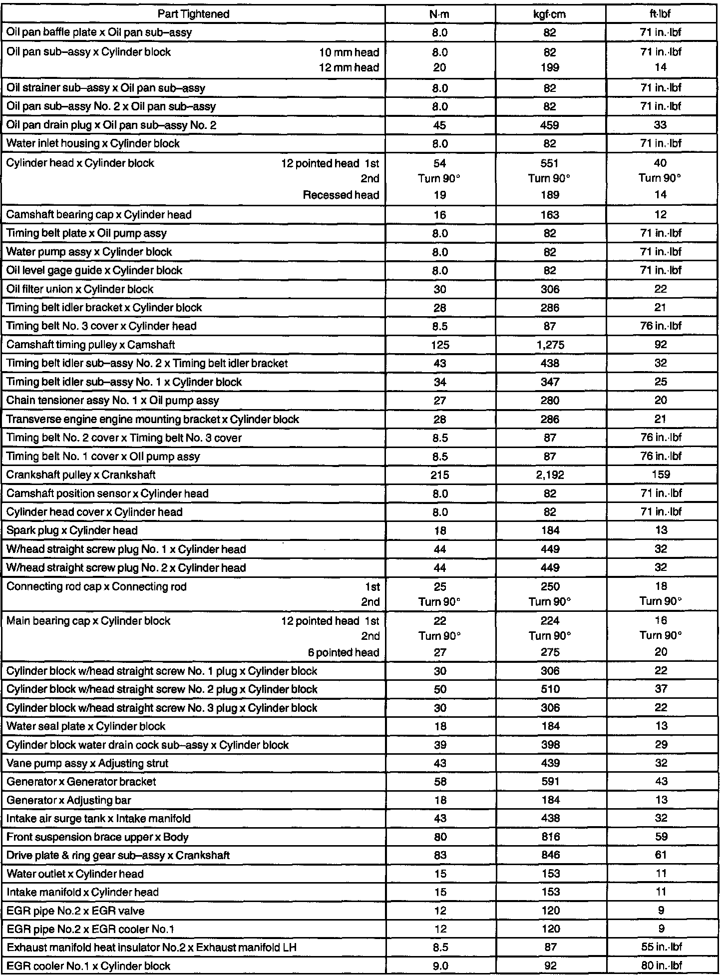 Engine Technical and Torque Data