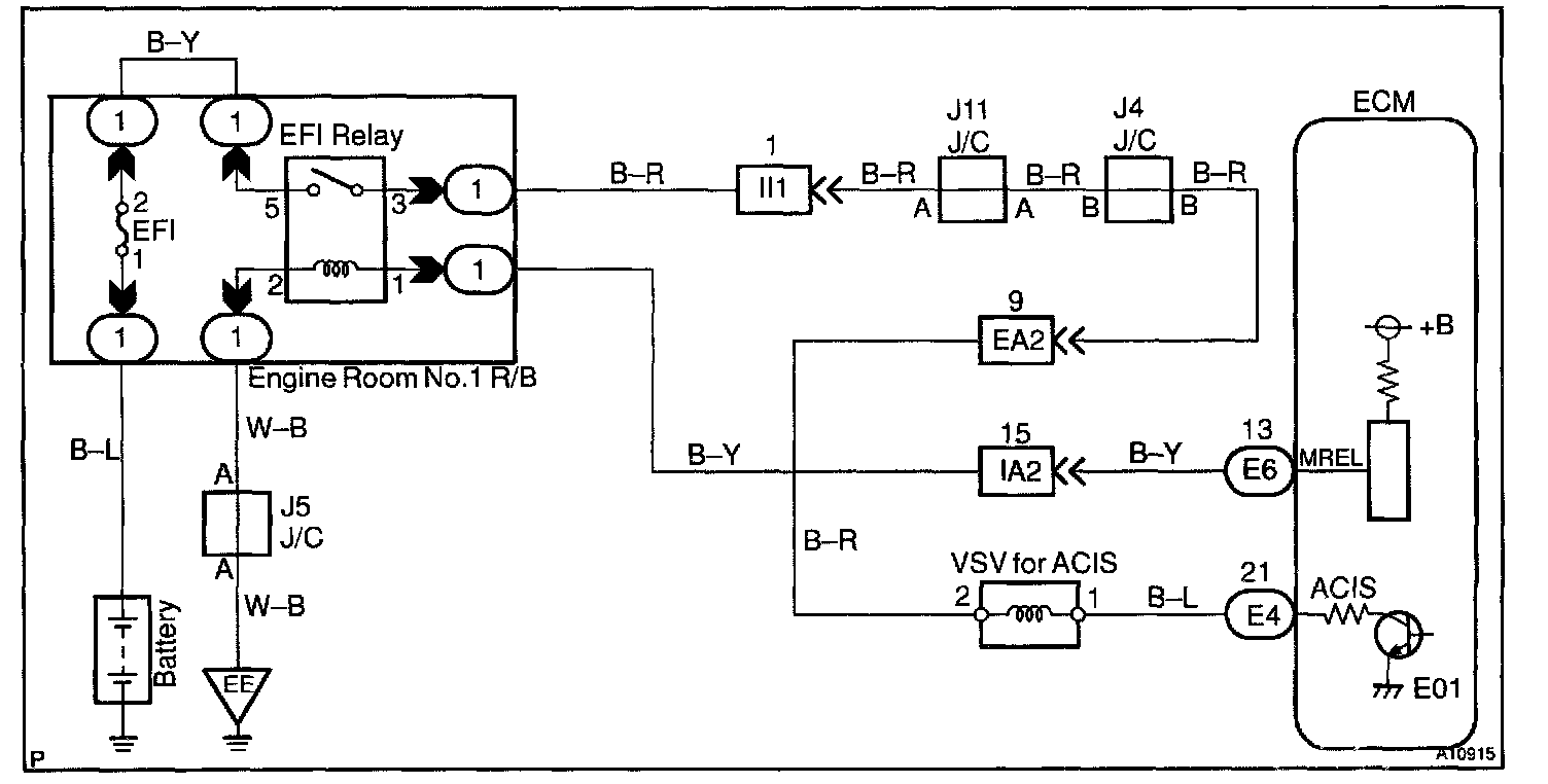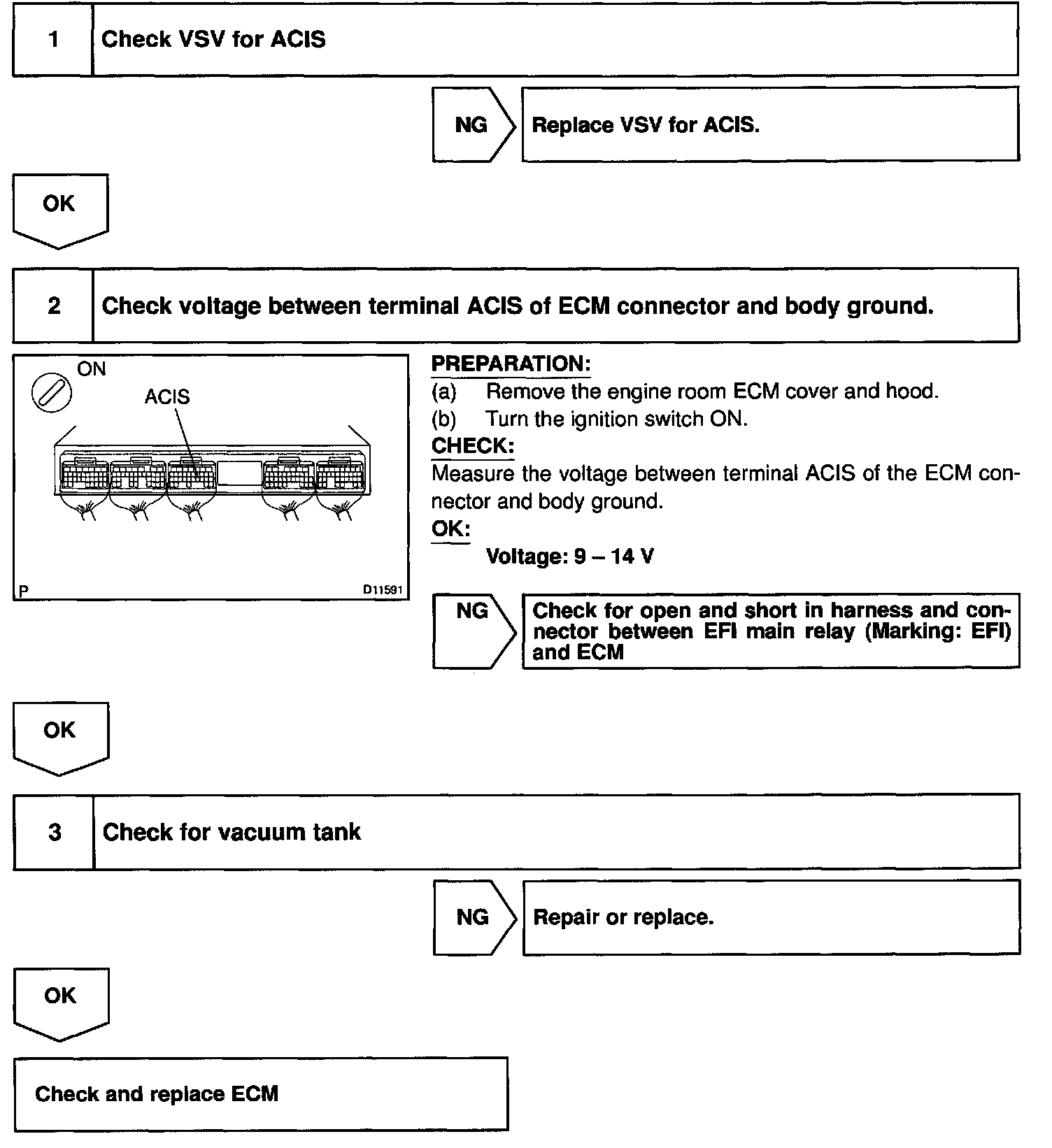 This circuit opens and closes the Intake Air Control Valve (IACV) in response to the engine load in order to increase the intake efficiency (ACIS: Acoustic Control Induction System).