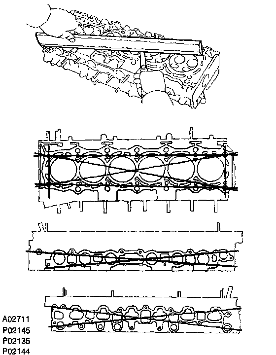 INSPECT CYLINDER HEADa. Inspect for the flatness. Using precision straight edge and feeler gauge, measure the surfaces contacting the cylinder block, intake and exhaust manifolds for warpage.