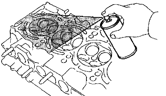 Using a dye penetrant, check the combustion chamber, intake ports, exhaust ports and cylinder block surface for cracks.