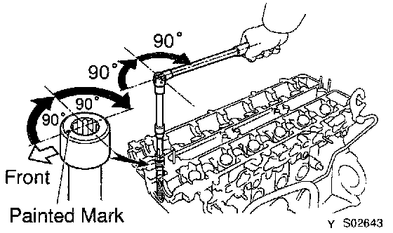 f. Retighten cylinder head bolts by an additional 90° shown.