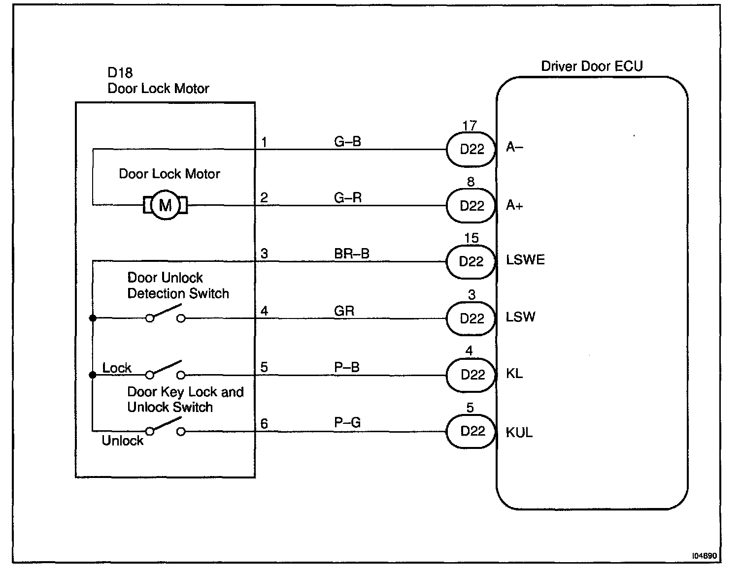 The door unlock detection switch is built in the door lock motor assembly. This switch is ON when the door lock knob is in the unlock position and OFF when the lock knob is in the lock position. The ECU detects the door lock knob conditions is this circuit. It is used as one of the operating conditions for the key confinement prevention function