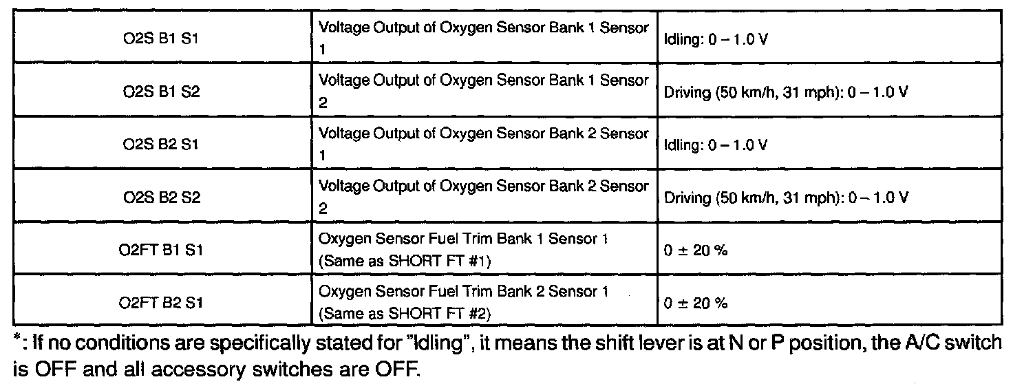 ENGINE OPERATING CONDITIONNOTE: The values given for "Normal Condition" are representative values, so a vehicle may still be normal even if its value varies differ from those listed here. So do not decide whether a part is faulty or not solely according to the "Normal Condition" here.