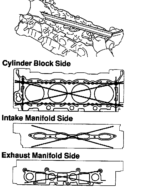 Using a precision straight edge and feeler gauge, measure the surfaces contacting the cylinder block and the manifolds for warpage.