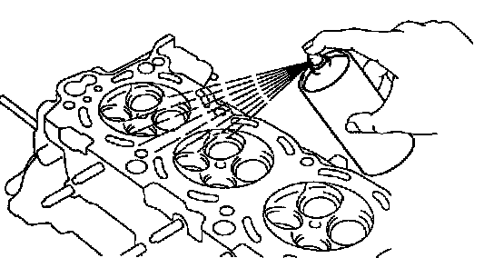 Using a dye penetrant, check the combustion chamber, intake ports, exhaust ports and cylinder block surface for cracks.