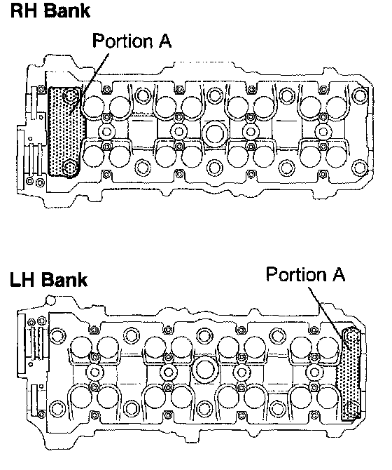 NOTICE: Do not drop the plate washer for cylinder head bolt into portion A of the cylinder head. If dropped into portion A, the plate washer will pass through the cylinder head and cylinder block into the oil pan.