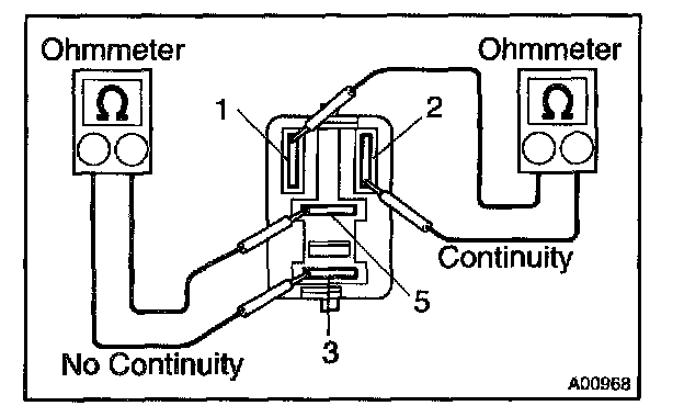 2. Using an ohmmeter, check that there is continuity between terminals 3 and 5.
